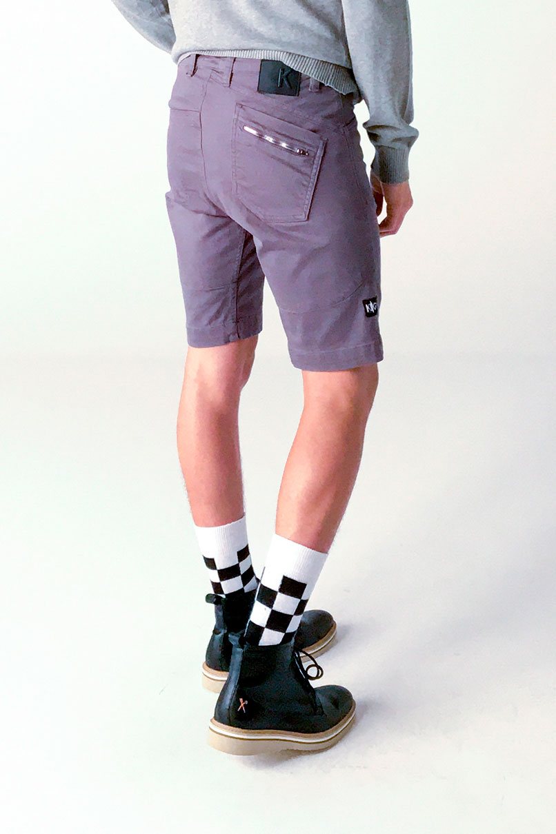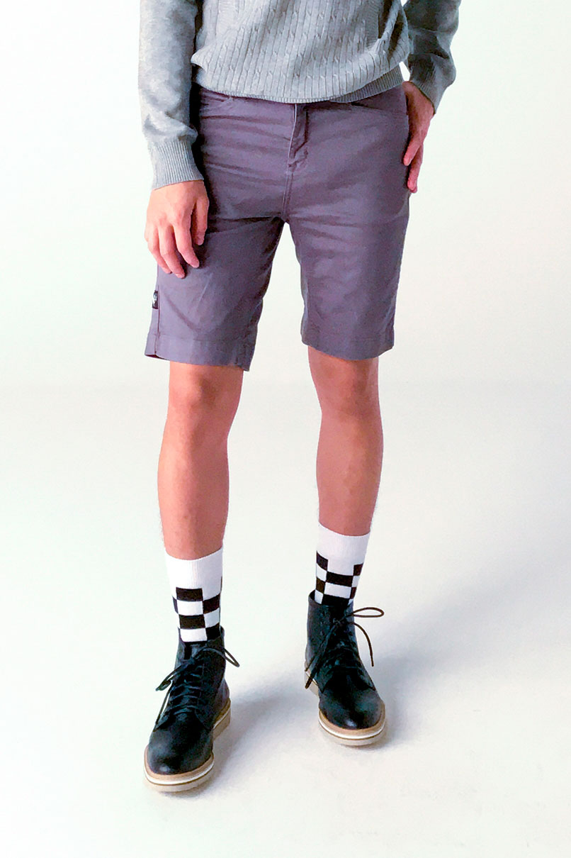 Bermuda de Sarja Cinza, Cintura intermediária, Fechamento em Zíper, Bolsos convencionais, Possui um bolso embutido traseiro e um bolso com Zíper.