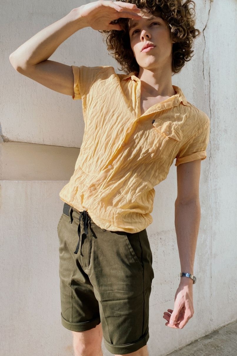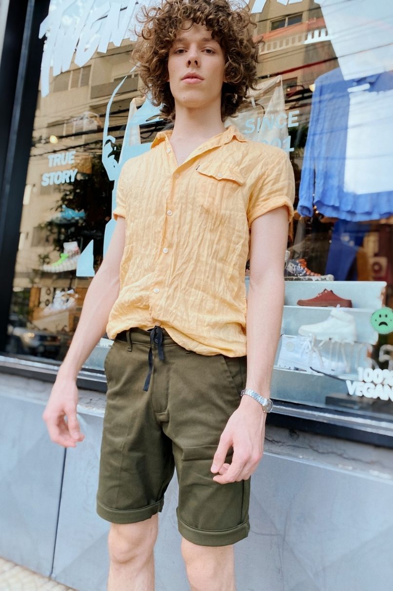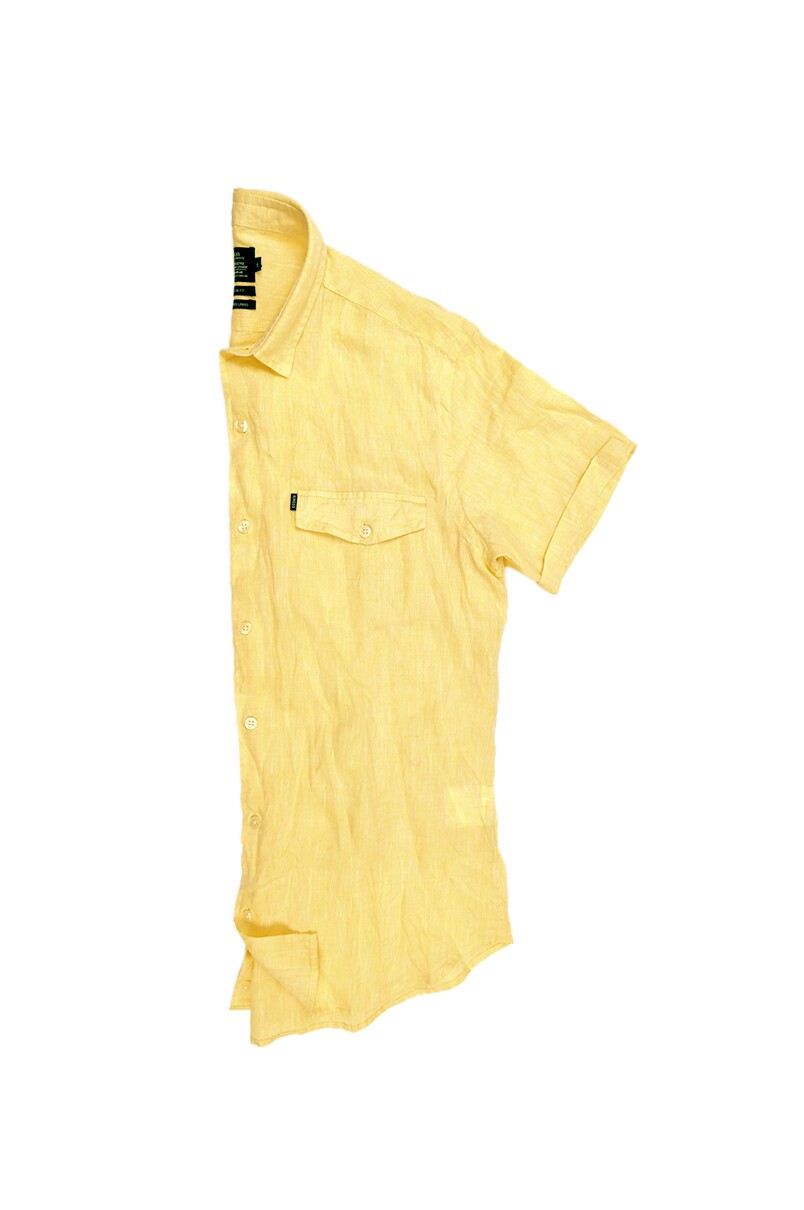 CAMISA DE LINHO MANGA CURTA AMARELO