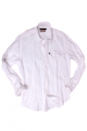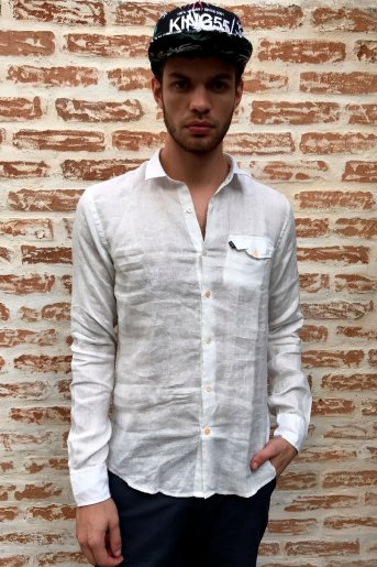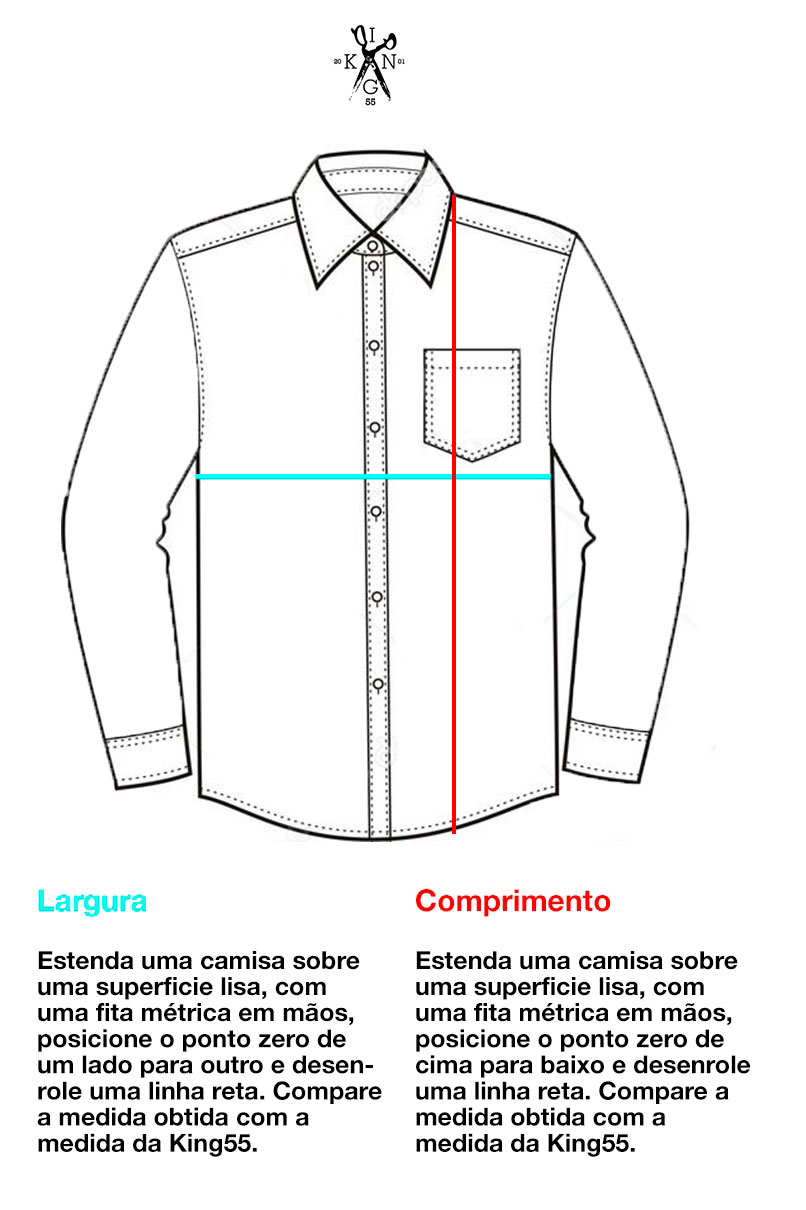 Modelagem reta, colarinho americano, mangas longas, punhos com abotoamento regulável, e carcela com botão. Costurada com linha 100% Algodão, botões de massa personalizados.