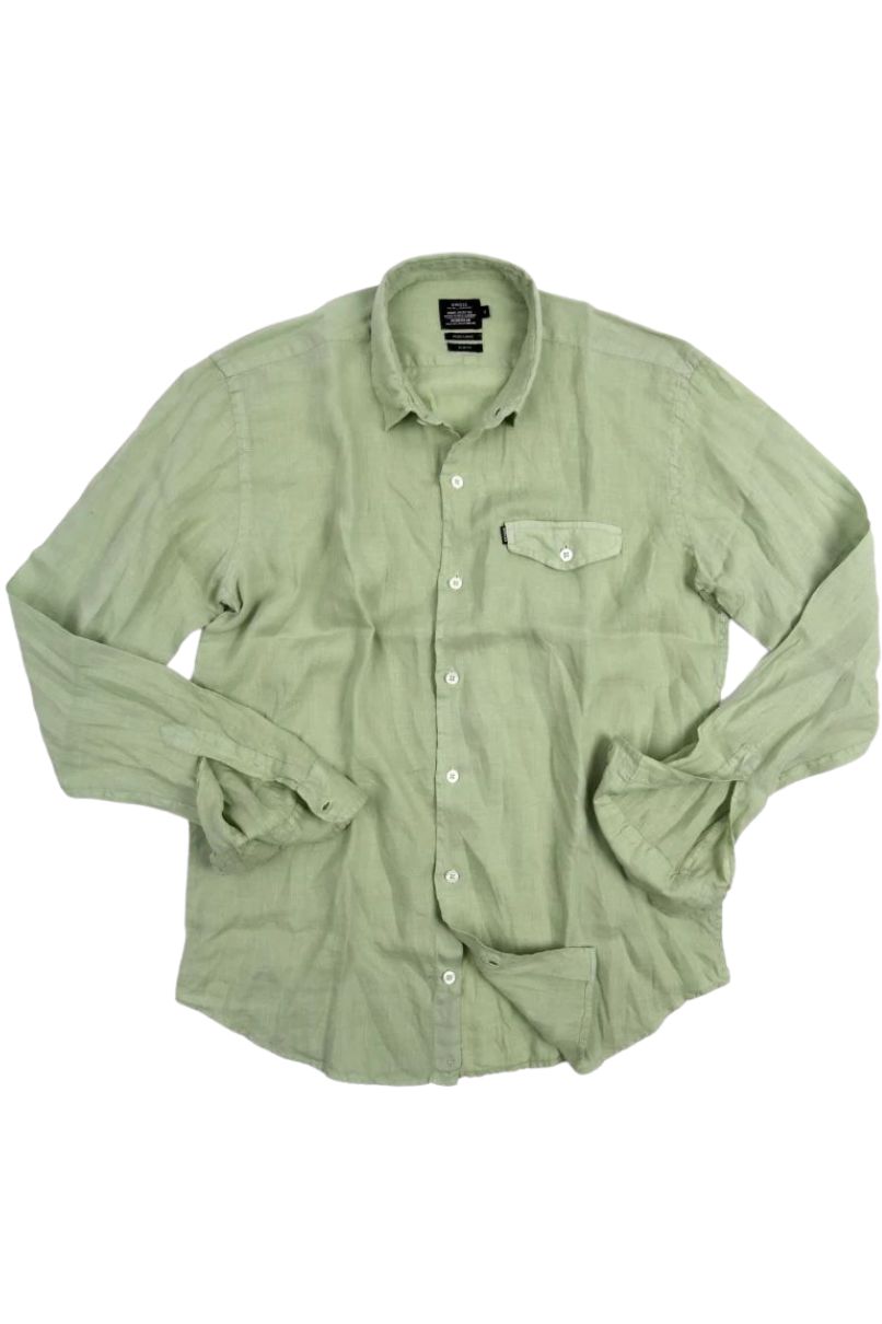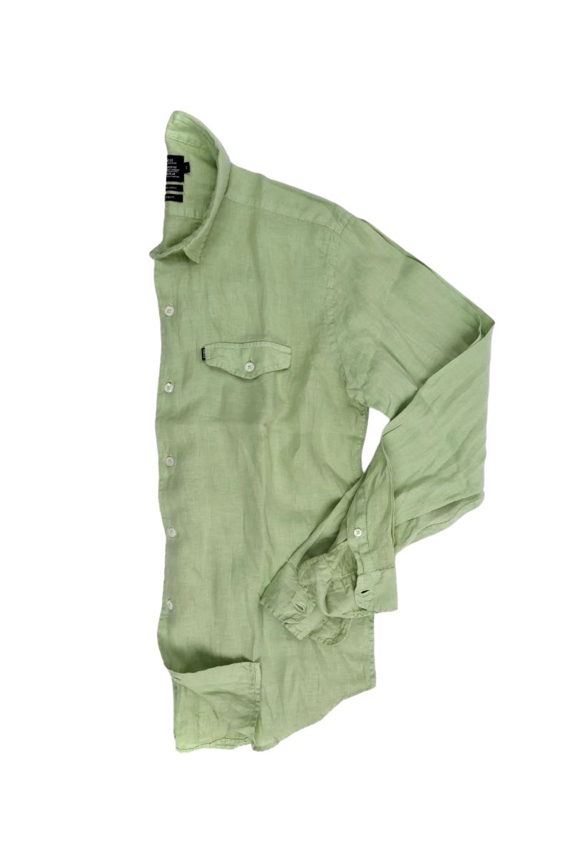 CAMISA EM LINHO MANGA LONGA VERDE AGUA ONE POCKET