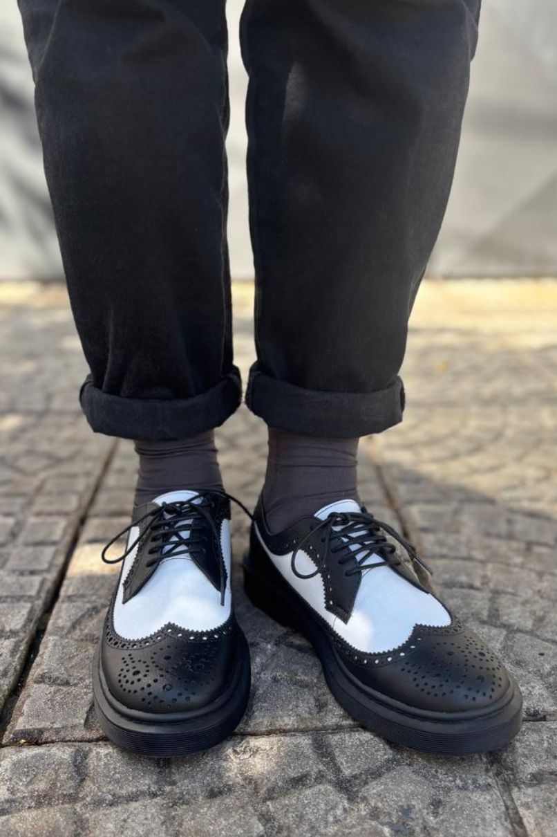 SAPATO BROGUE PRETO E BRANCO ROCKABILLY