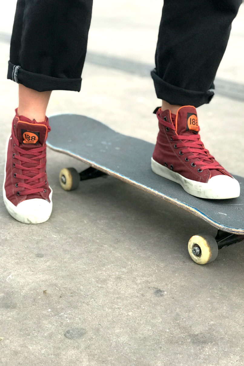 Tênis Vegano Vinho, cano alto, Confeccionado em tecido de algodão - 100% livre de Crueldade Animal. Esse Tênis tem um super diferencial que é uma fita refletiva na parte de trás, proporcionando mais segurança para quem anda de Bike, Skate, etc...tambem possui elastico na parte interna para segurar a lingua do tênis, dando mais conforto e estabilidade no cabedal.