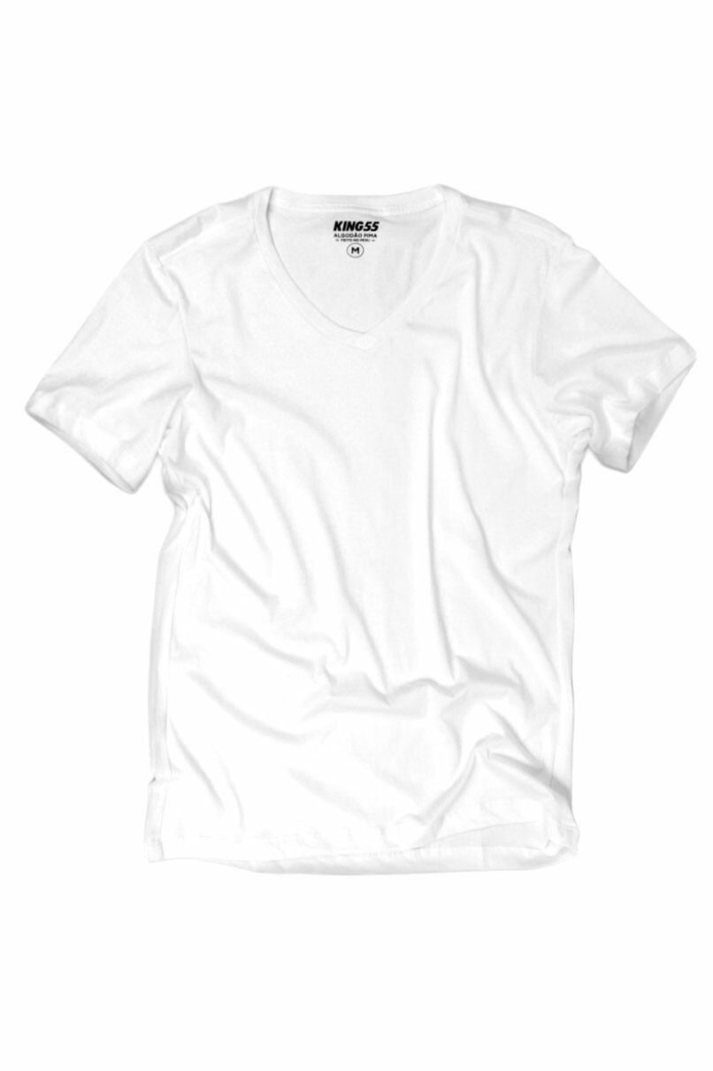 CAMISETA BRANCA LISA GOLA V PIMA PLAN