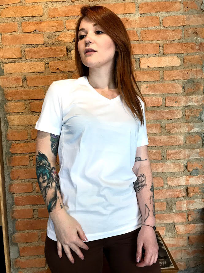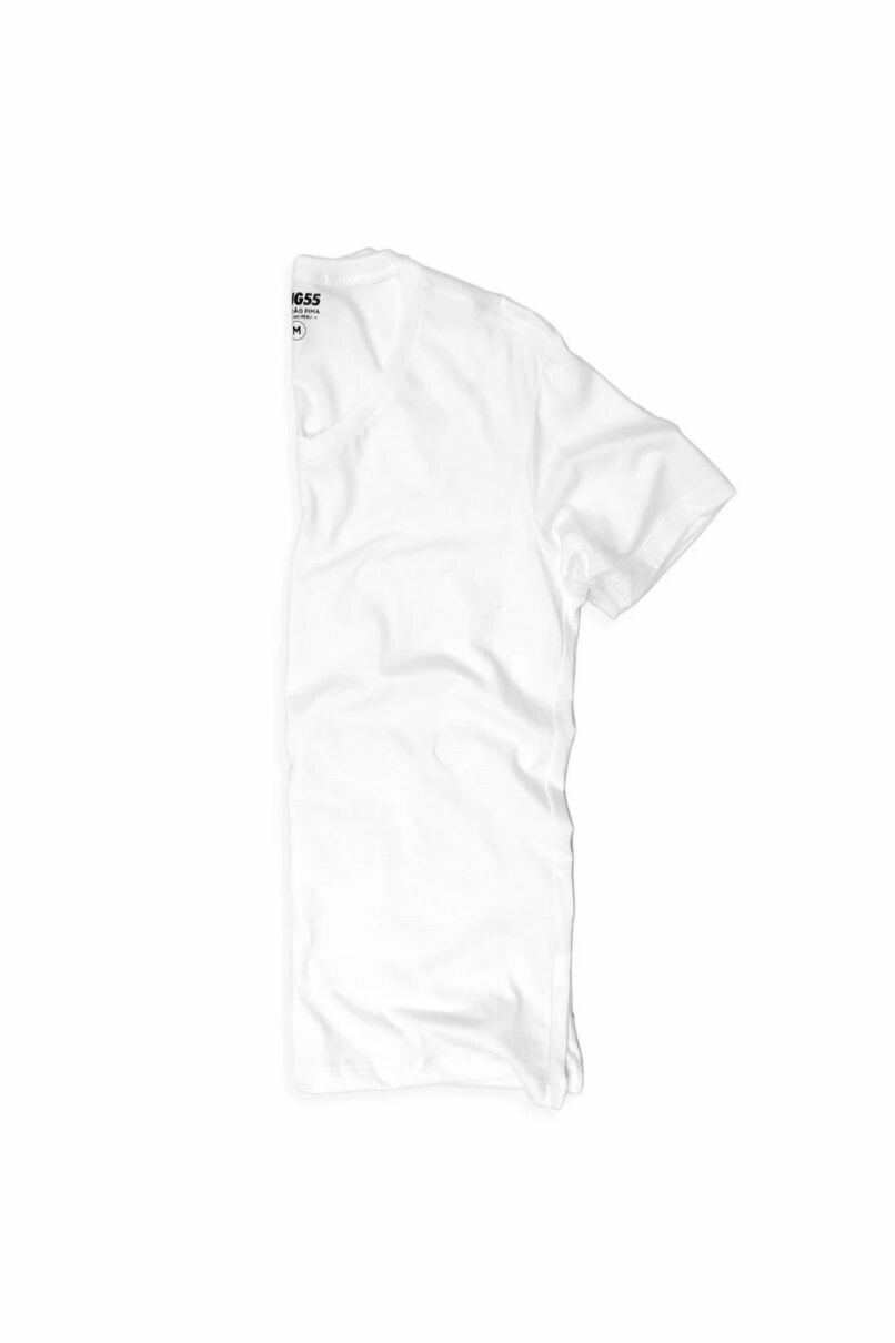 Camiseta Branca Lisa Gola "V", Vegana desenhada no Brasil, confeccionada no Peru, modelagem slim gola "V".