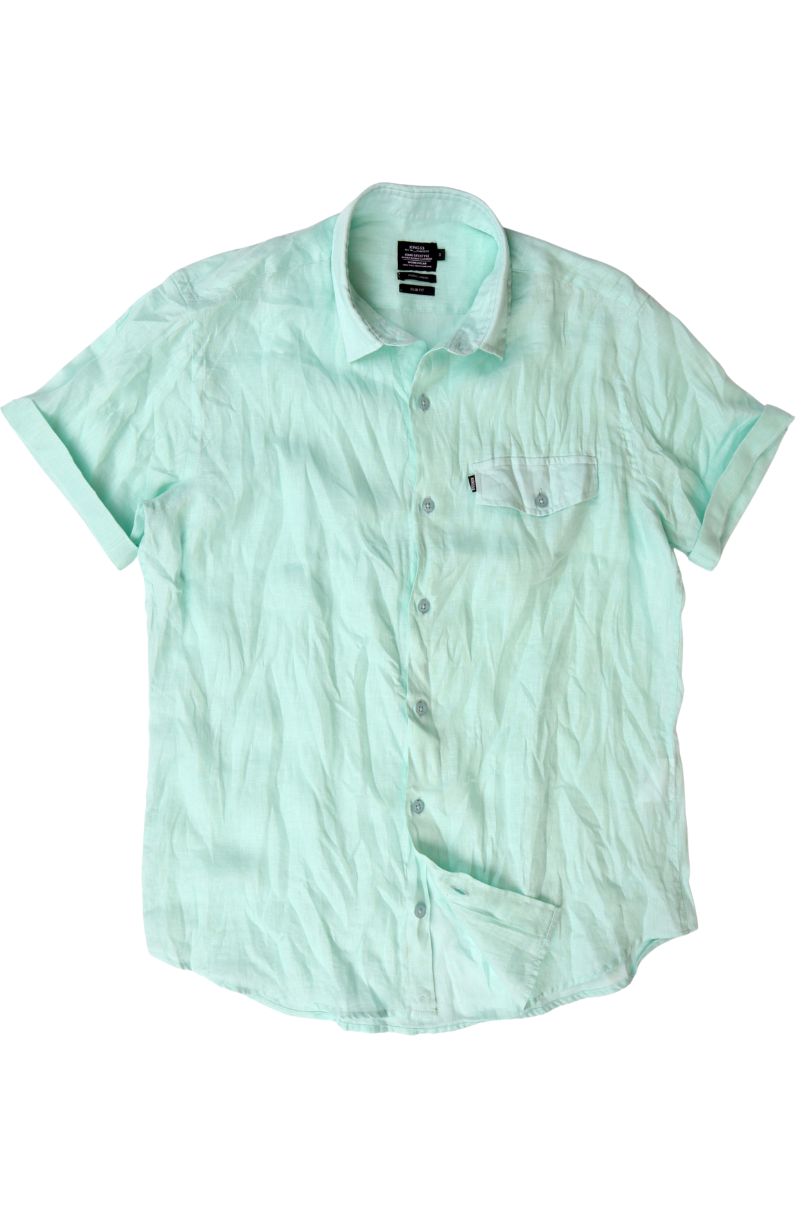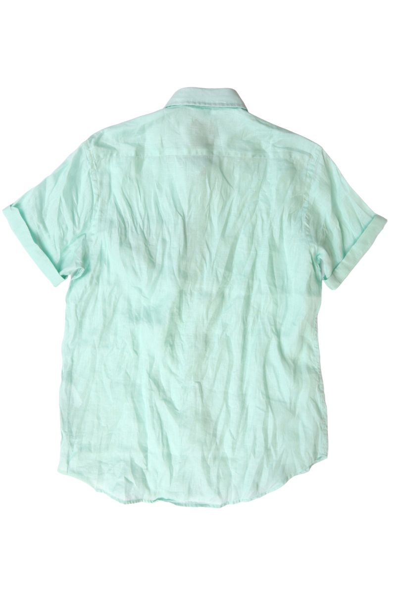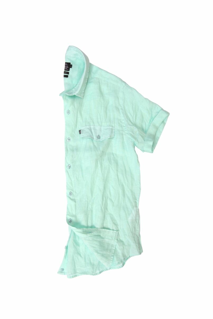 CAMISA DE LINHO MASCULINA MANGA CURTA VERDE ÁGUA
