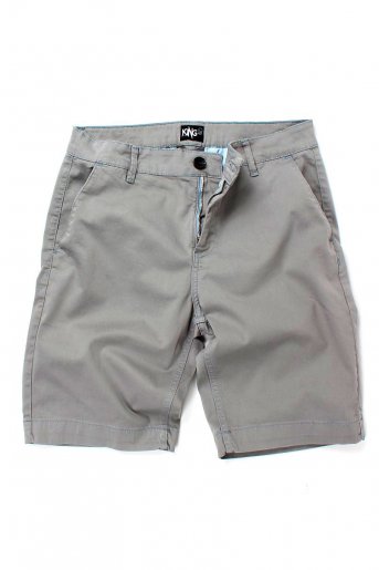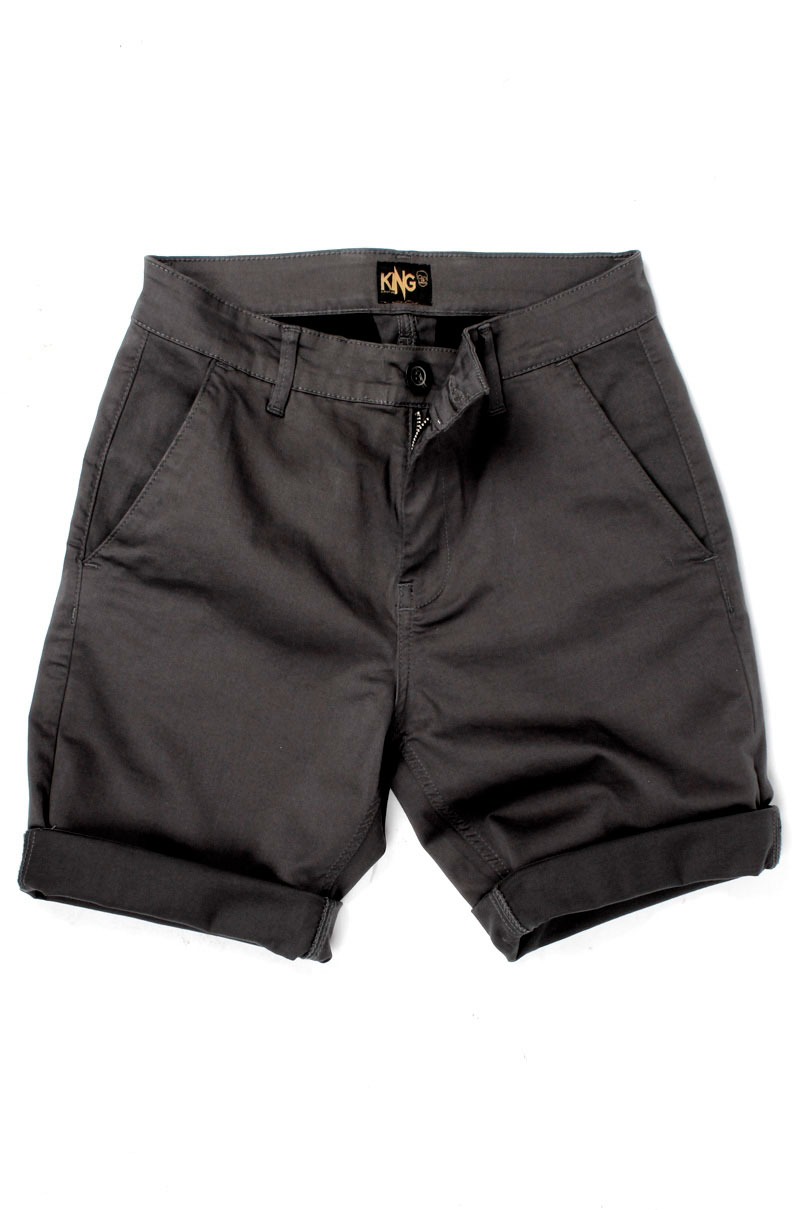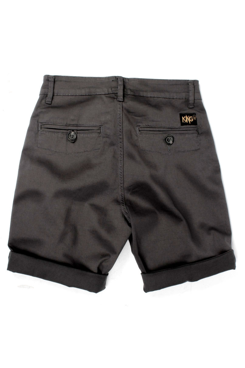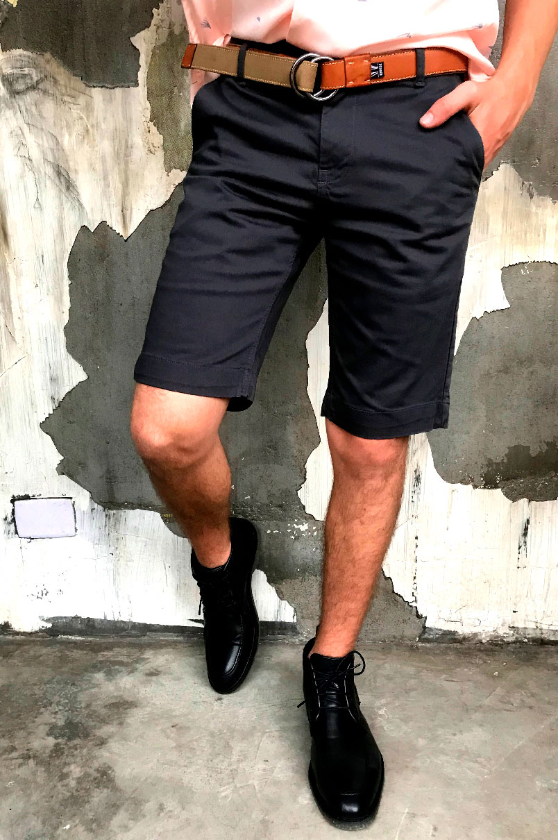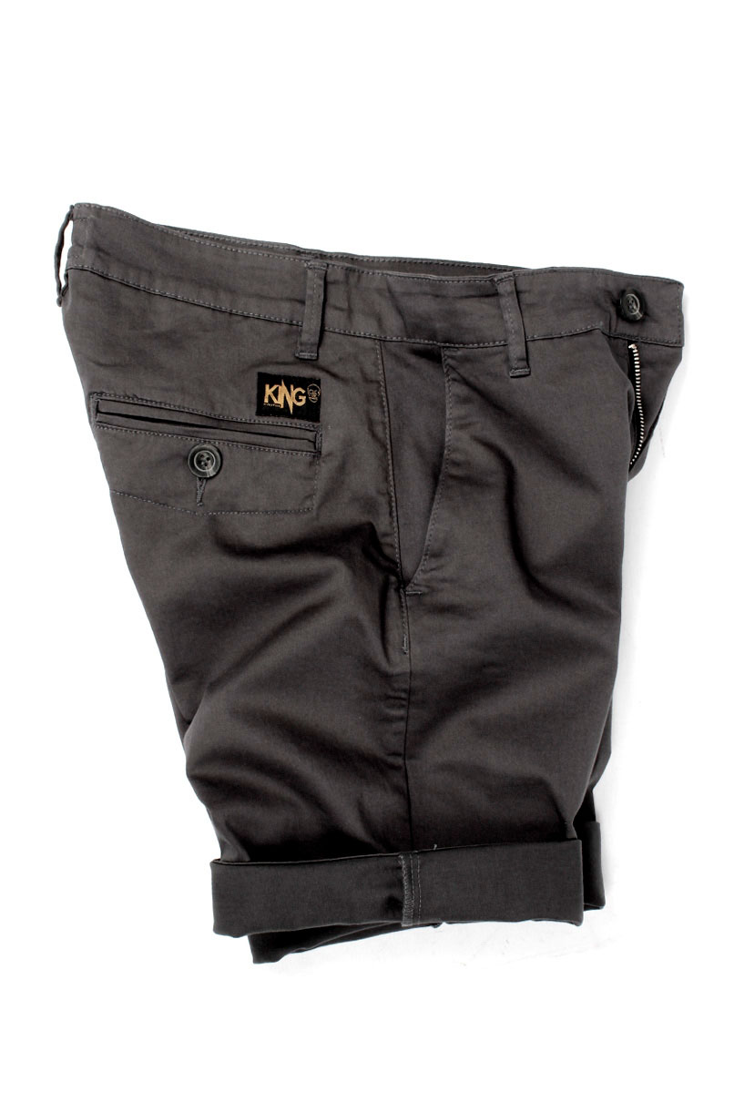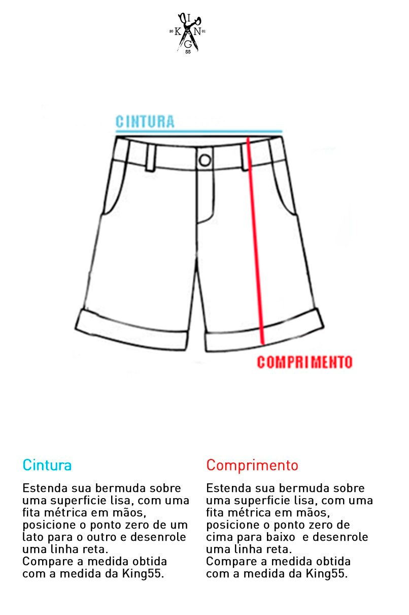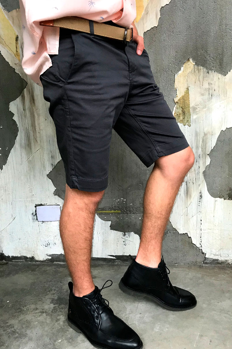 Bermuda de sarja Grafite, cintura intermediária, bolsos faca, bolsos traseiros embutido com fechamento em botão. Fechamento em zíper.