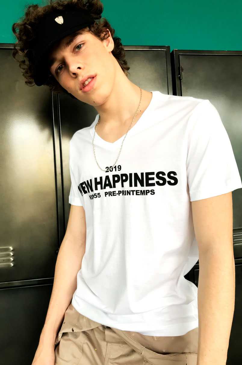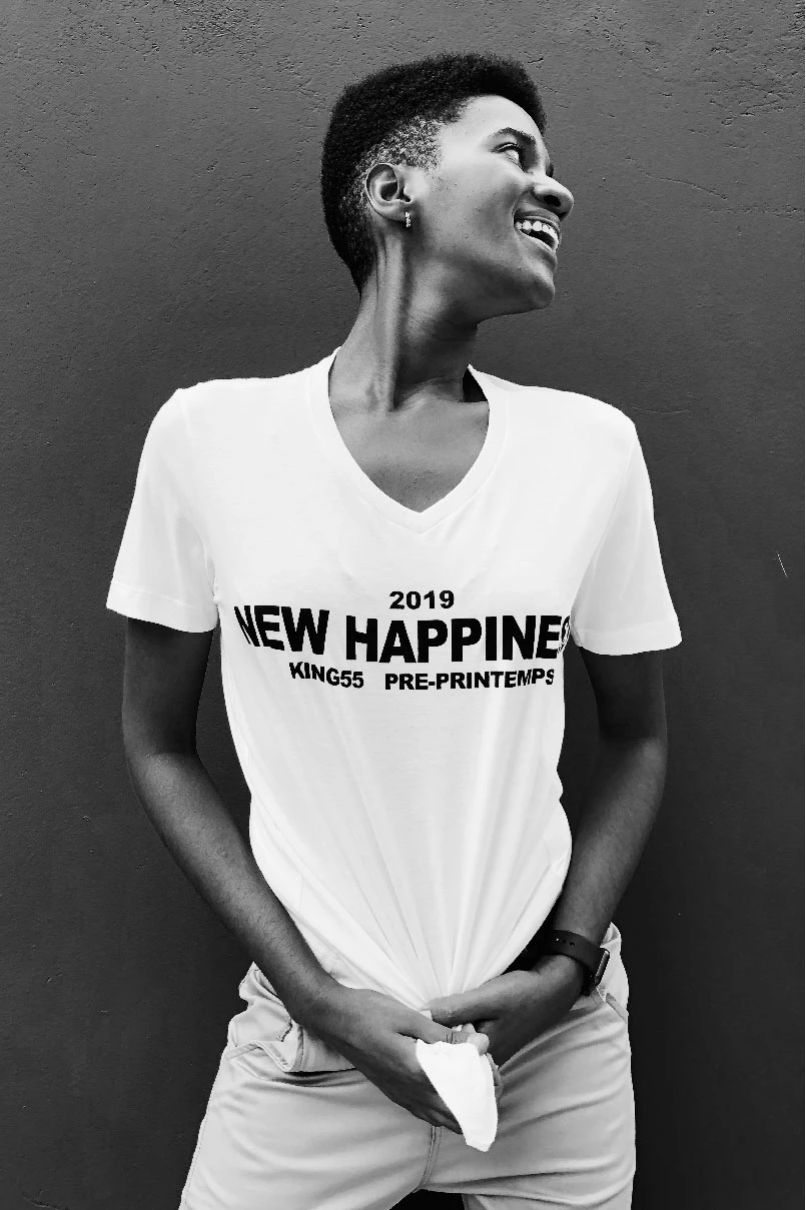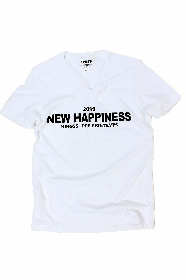 CAMISETA BRANCA GOLA V NEW HAPPINESS