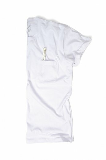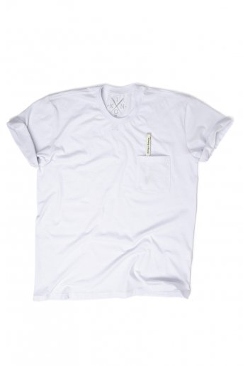 Camiseta Pima Branca, Vegana desenhada no Brasil, confeccionada no Peru, modelagem slim gola "V".