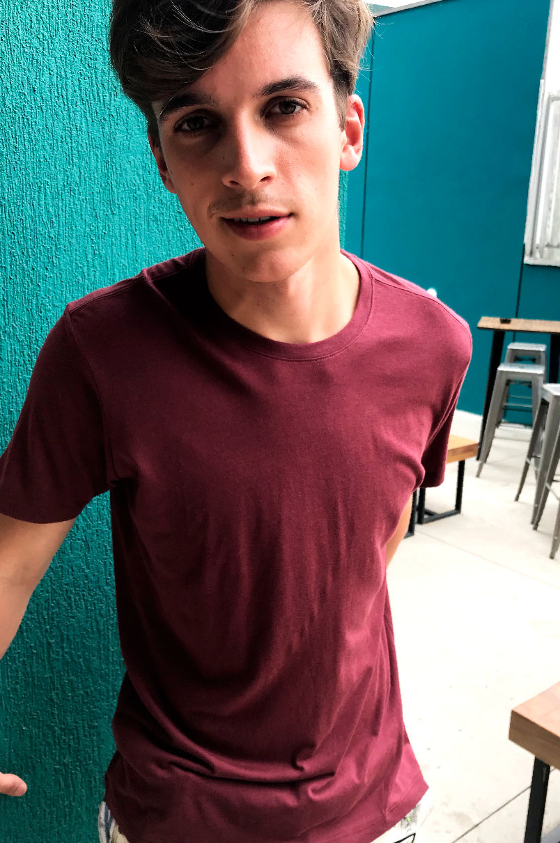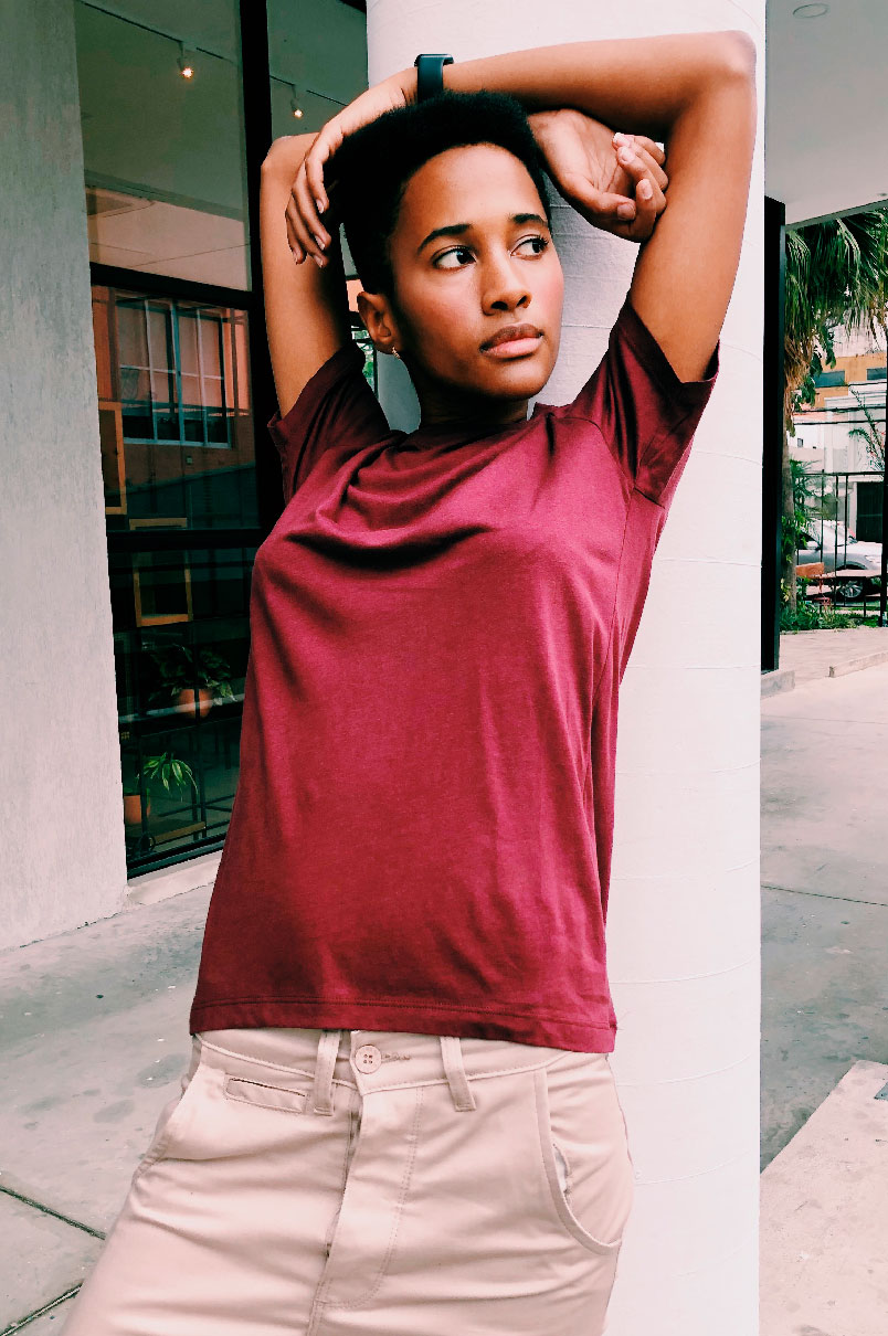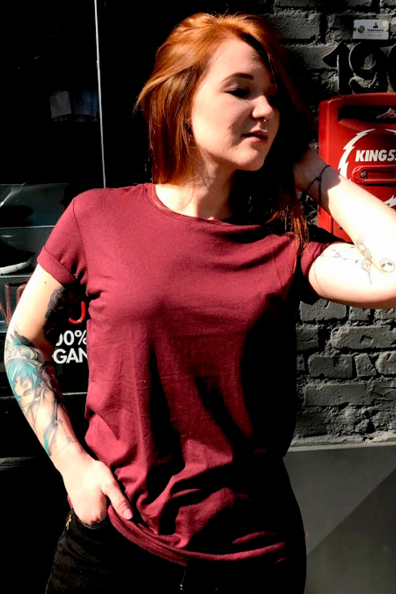 Camiseta vinho Lisa, Vegana desenhada no Brasil, confeccionada no Peru, modelagem slim gola careca.