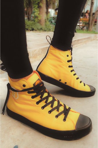 Tênis Vegano Amarelo Ed. Ltda Bruce Lee , cano alto super lancamento da KING55, Confeccionado em tecido de algodão - 100% livre de crueldade animal.