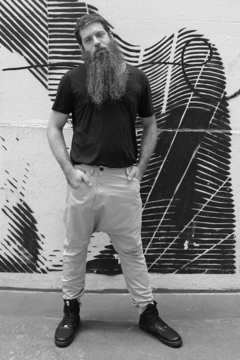 Sarja - 99% algodão, 1% elastano. Costurada com linha 100% algodão.