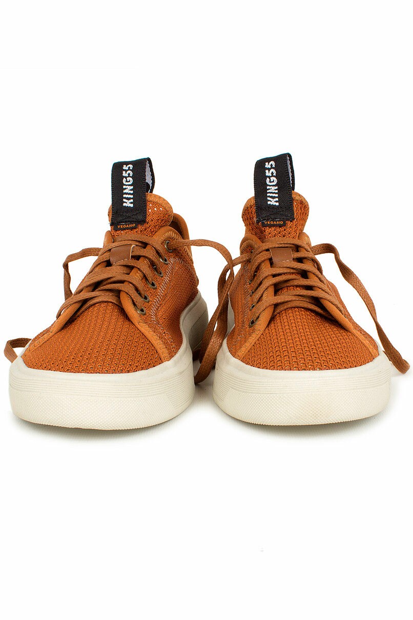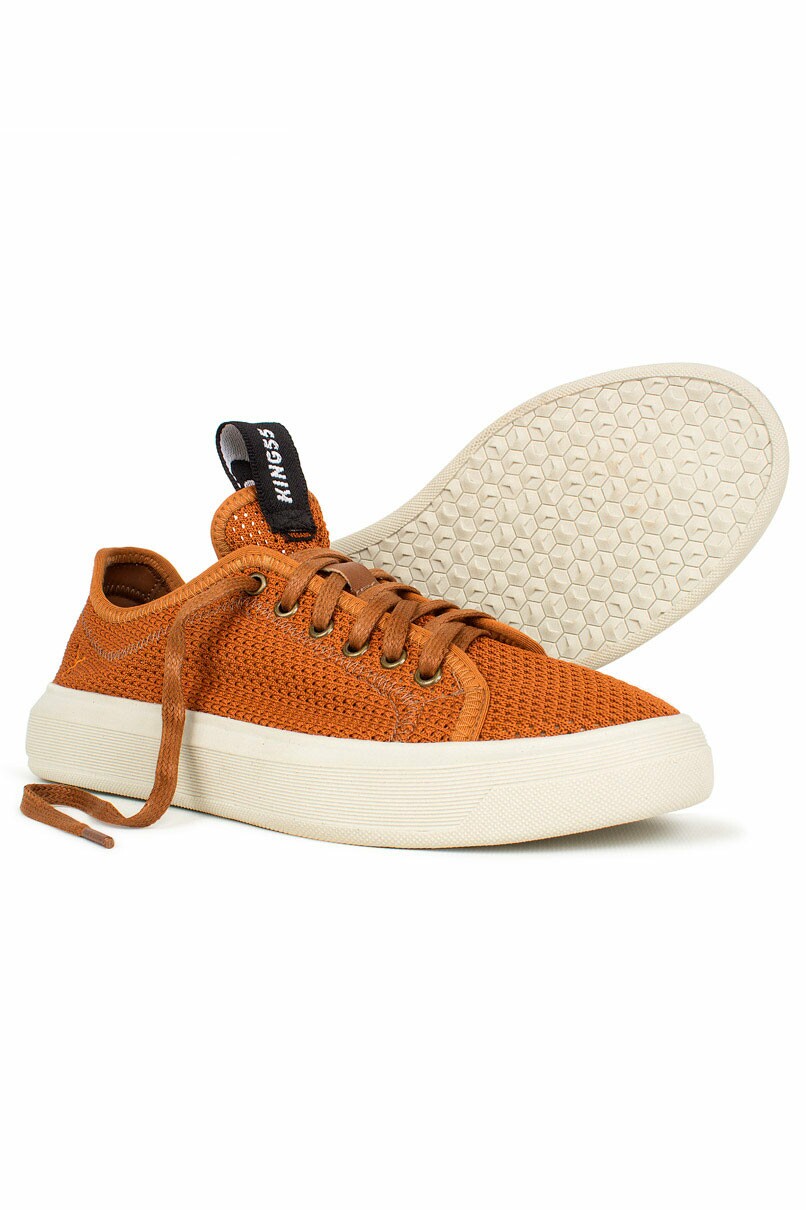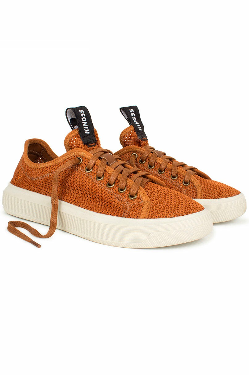 Tênis Marrom modelo Fox, calçado 100% Cruelty Free, produzido em material sintético.