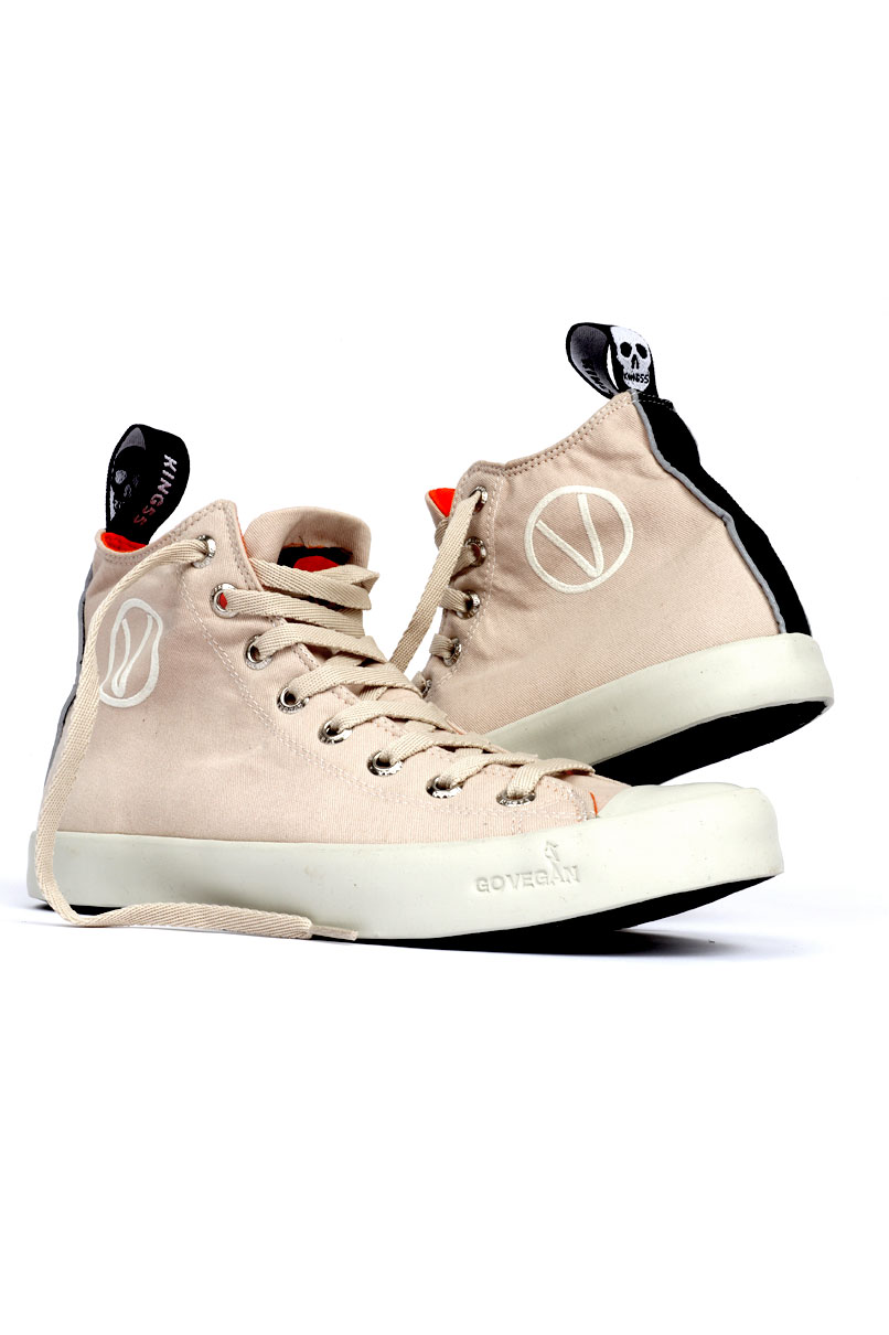 Tênis Vegano Areia, cano alto, Confeccionado em tecido de algodão - 100% livre de Crueldade Animal. Esse Tênis tem um super diferencial que é uma fita refletiva na parte de trás, proporcionando mais segurança para quem anda de Bike, Skate, etc...tambem possui elastico na parte interna para segurar a lingua do tênis, dando mais conforto e estabilidade no cabedal.