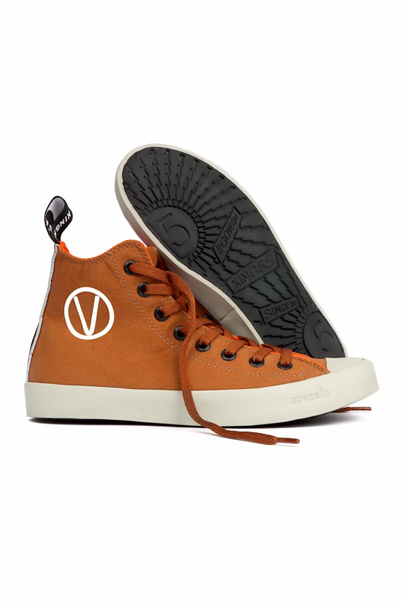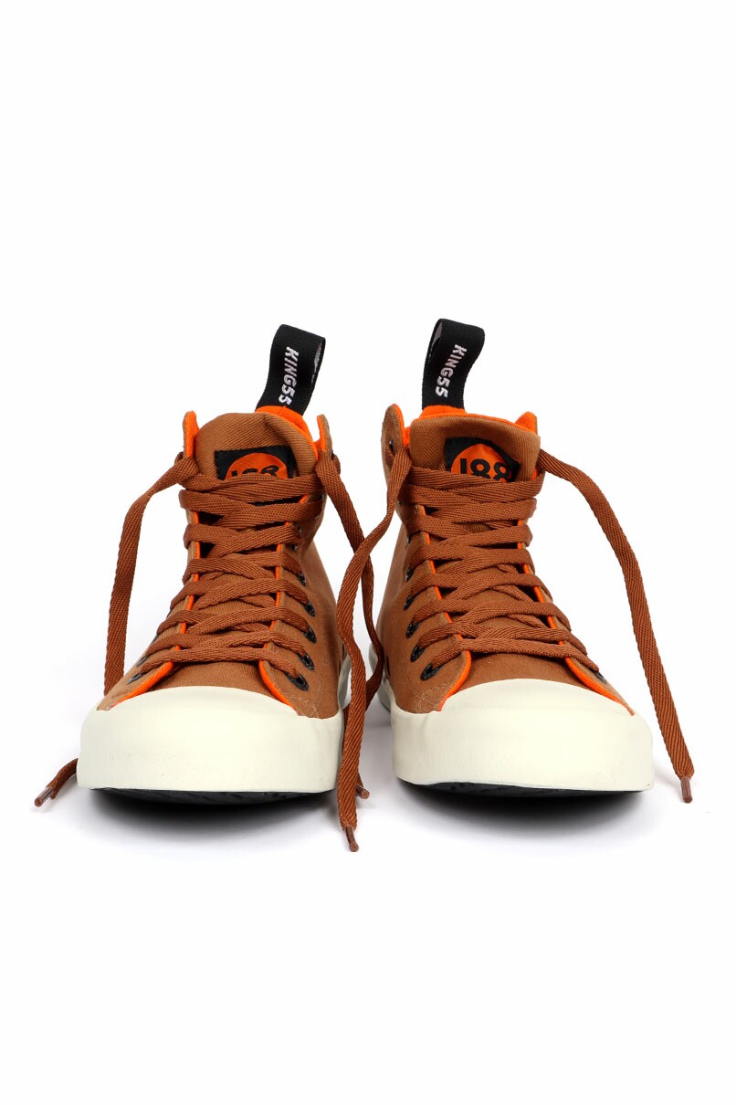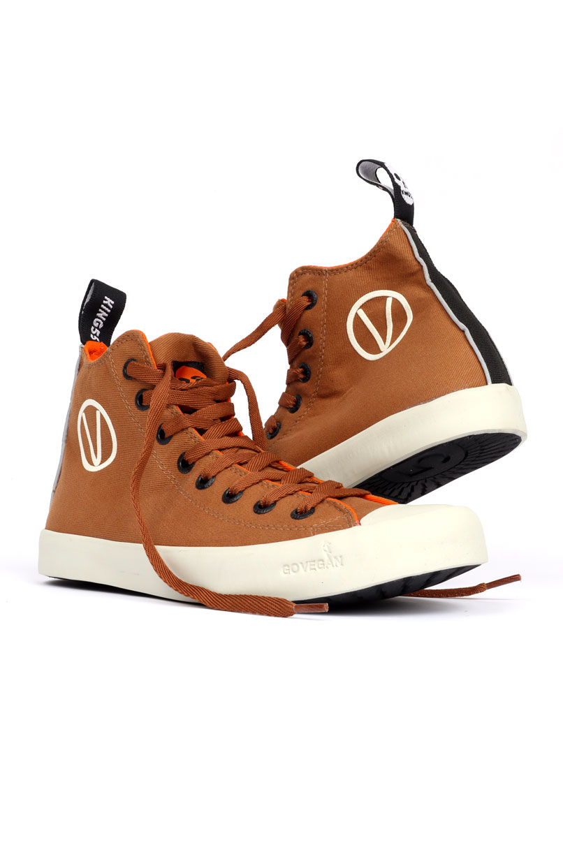 Tênis Vegano Marrom Casca, cano alto, Confeccionado em tecido de algodão - 100% livre de Crueldade Animal. Esse Tênis tem um super diferencial que é uma fita refletiva na parte de trás, proporcionando mais segurança para quem anda de Bike, Skate, etc...tambem possui elastico na parte interna para segurar a lingua do tênis, dando mais conforto e estabilidade no cabedal.