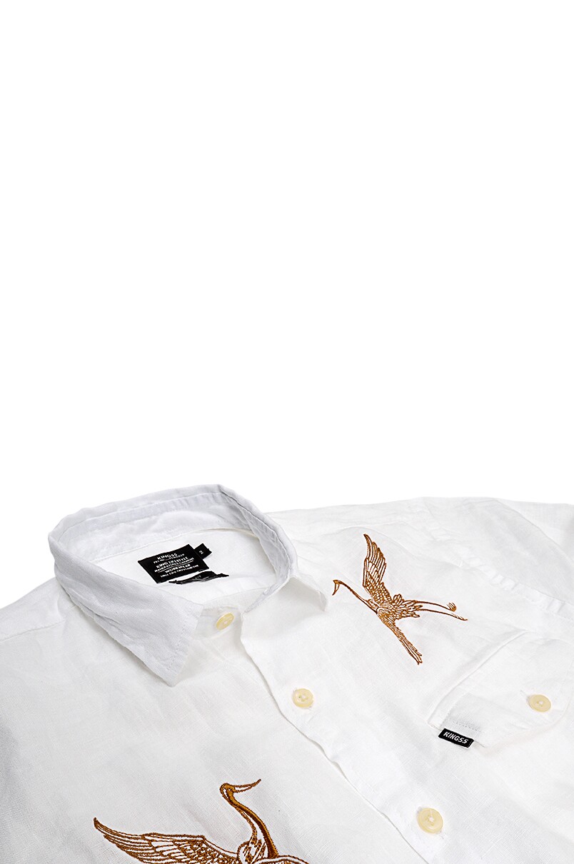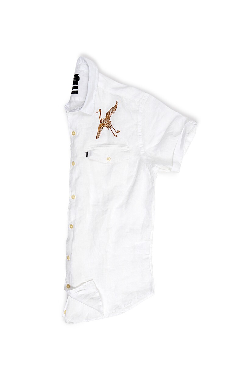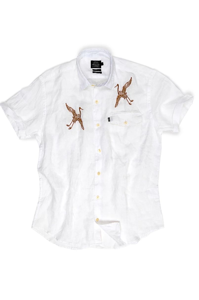 CAMISA DE LINHO MANGA CURTA BRANCA GARÇAS