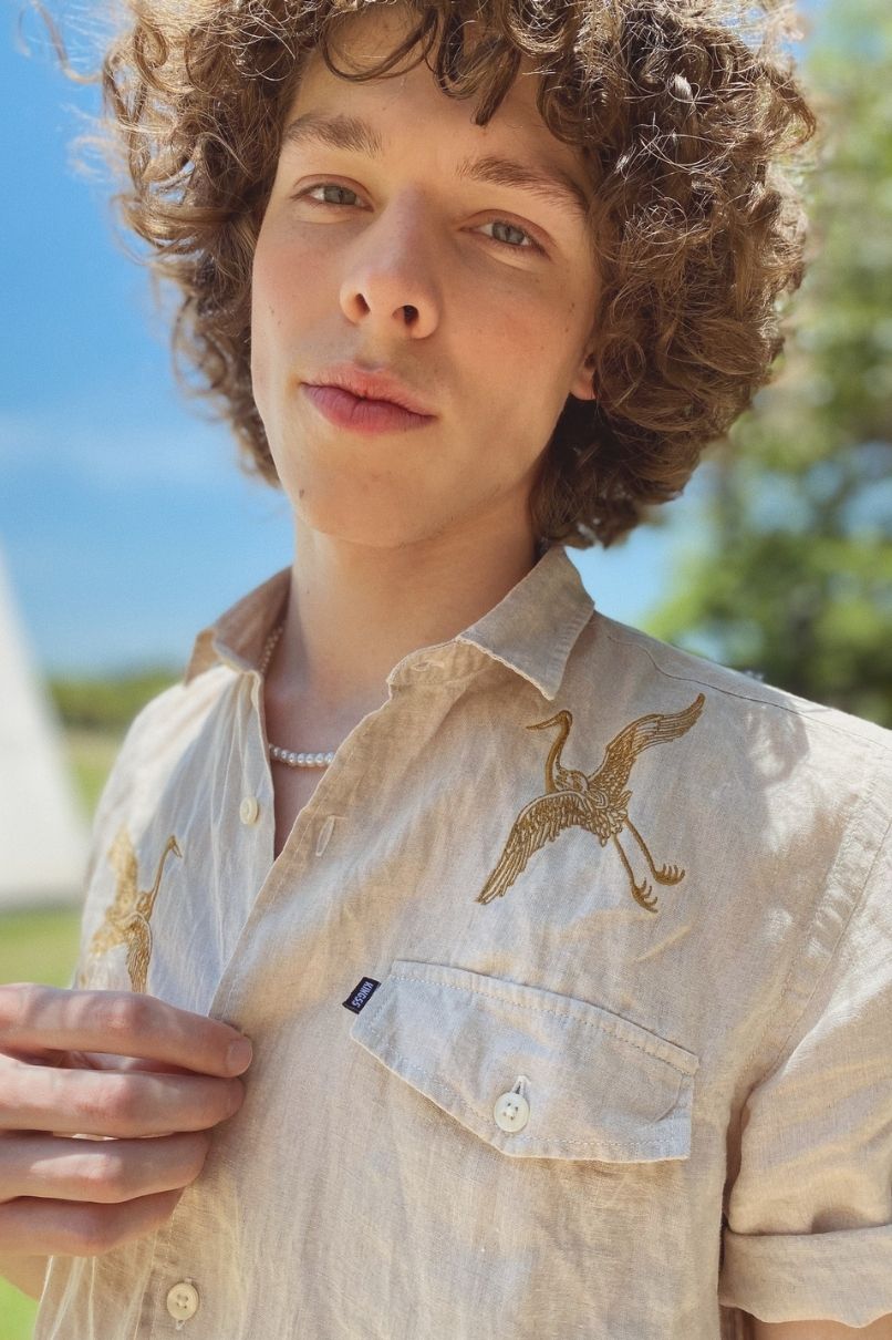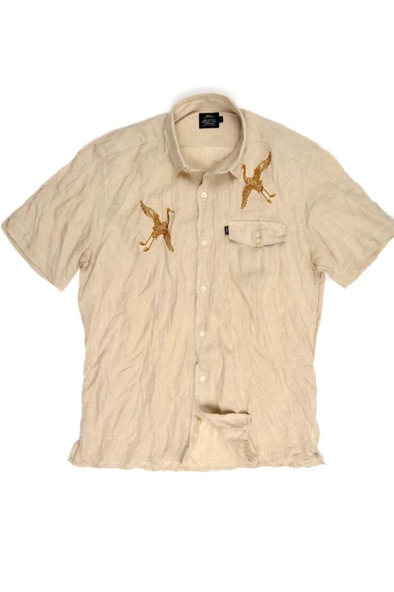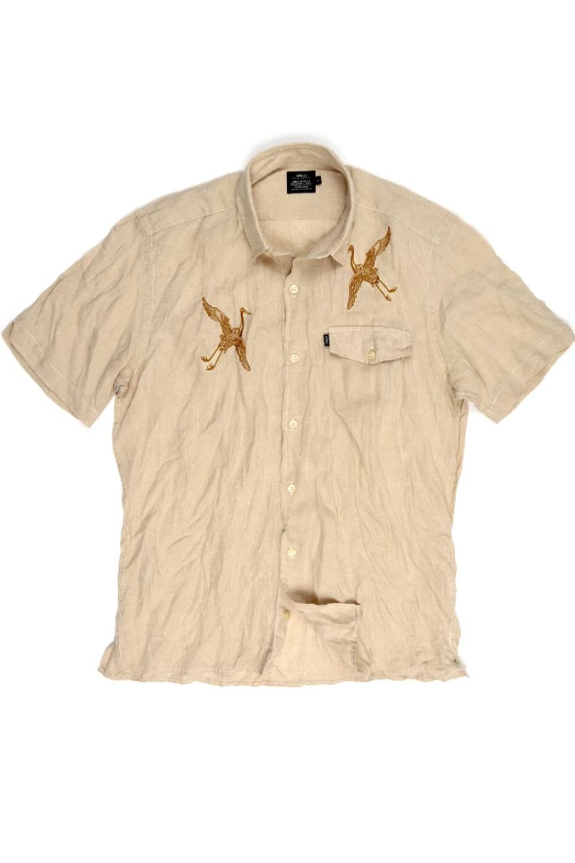 CAMISA DE LINHO MANGA CURTA KAKI GARÇAS
