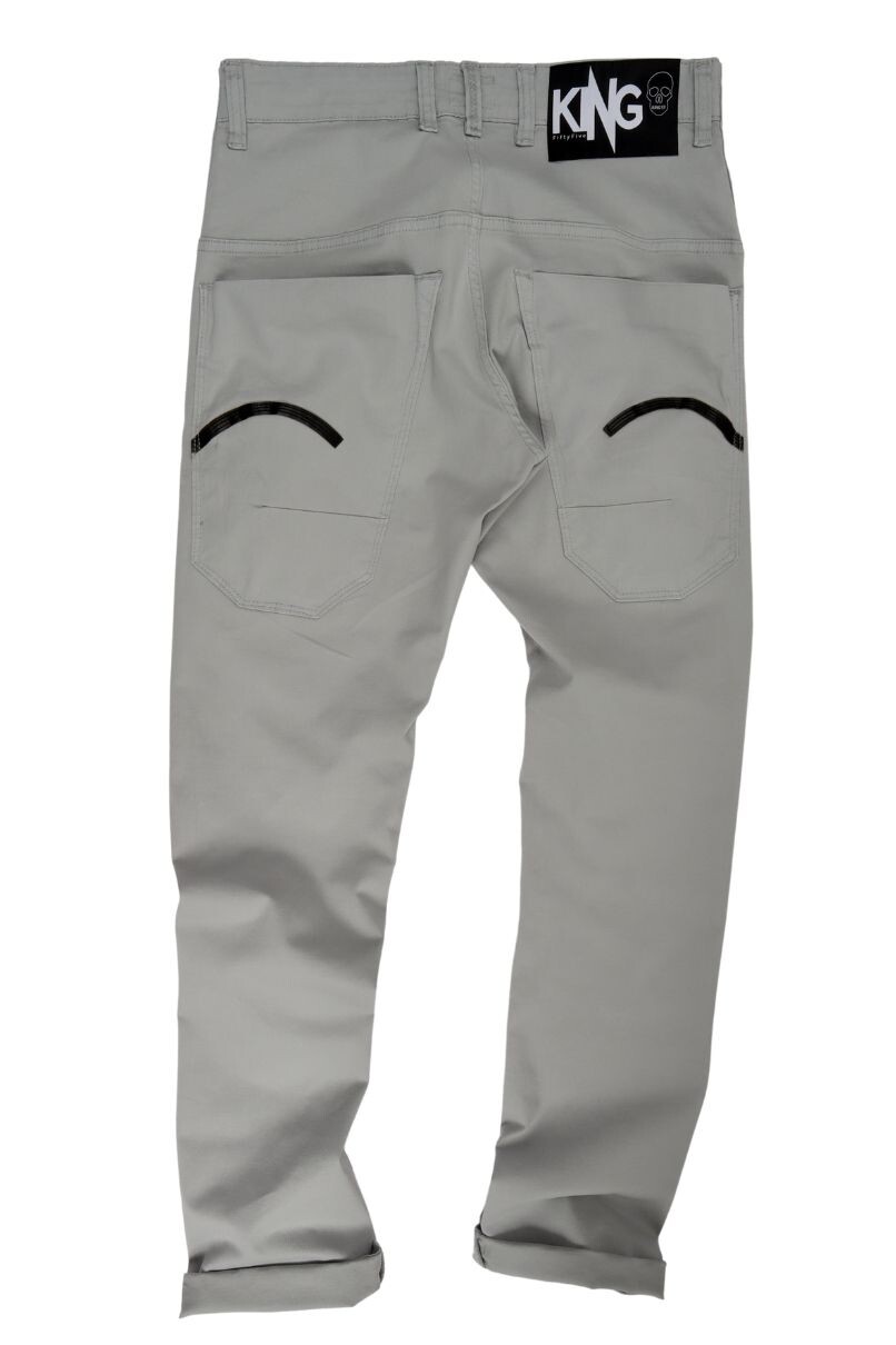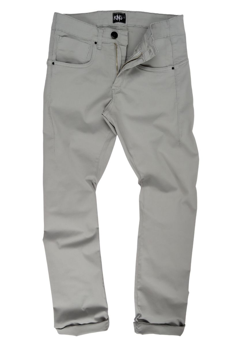 Calça de Sarja Cinza, sem costura na lateral, cintura média, modelagem skinny, bolsos posterior com 25cm de comprimento para maior conforto e fechamento em Zíper.
