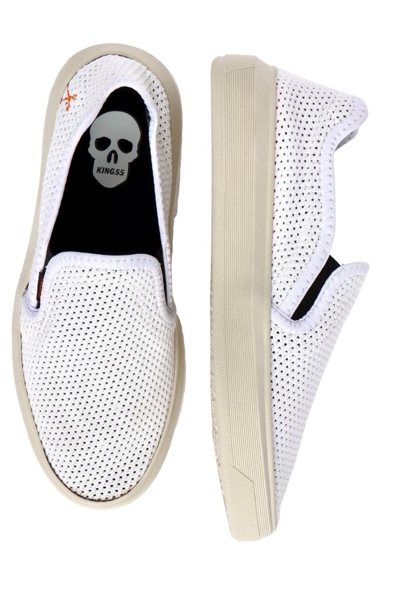 Tênis modelo Slip On, na cor branca, produzido em material sintético, 100% Cruelty Free.