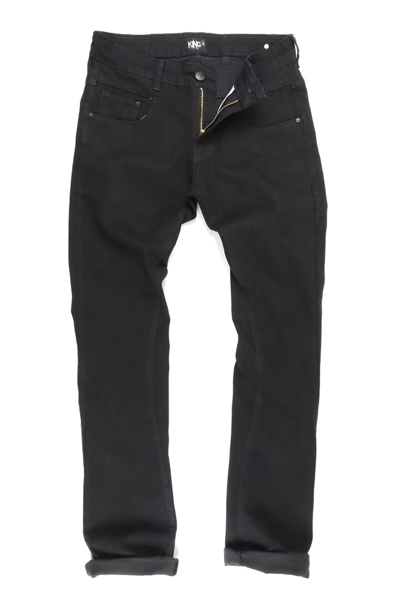 Calça em Jeans Preto, modelagem reta, bolso 5 pockets, reguladores no cós e recorte anatômico nas pernas. Costurada com linha de 100% algodão.
