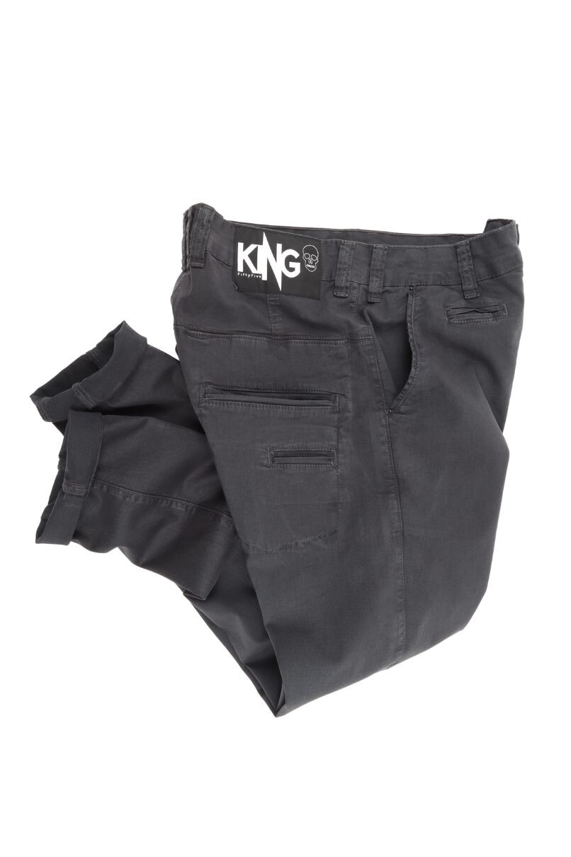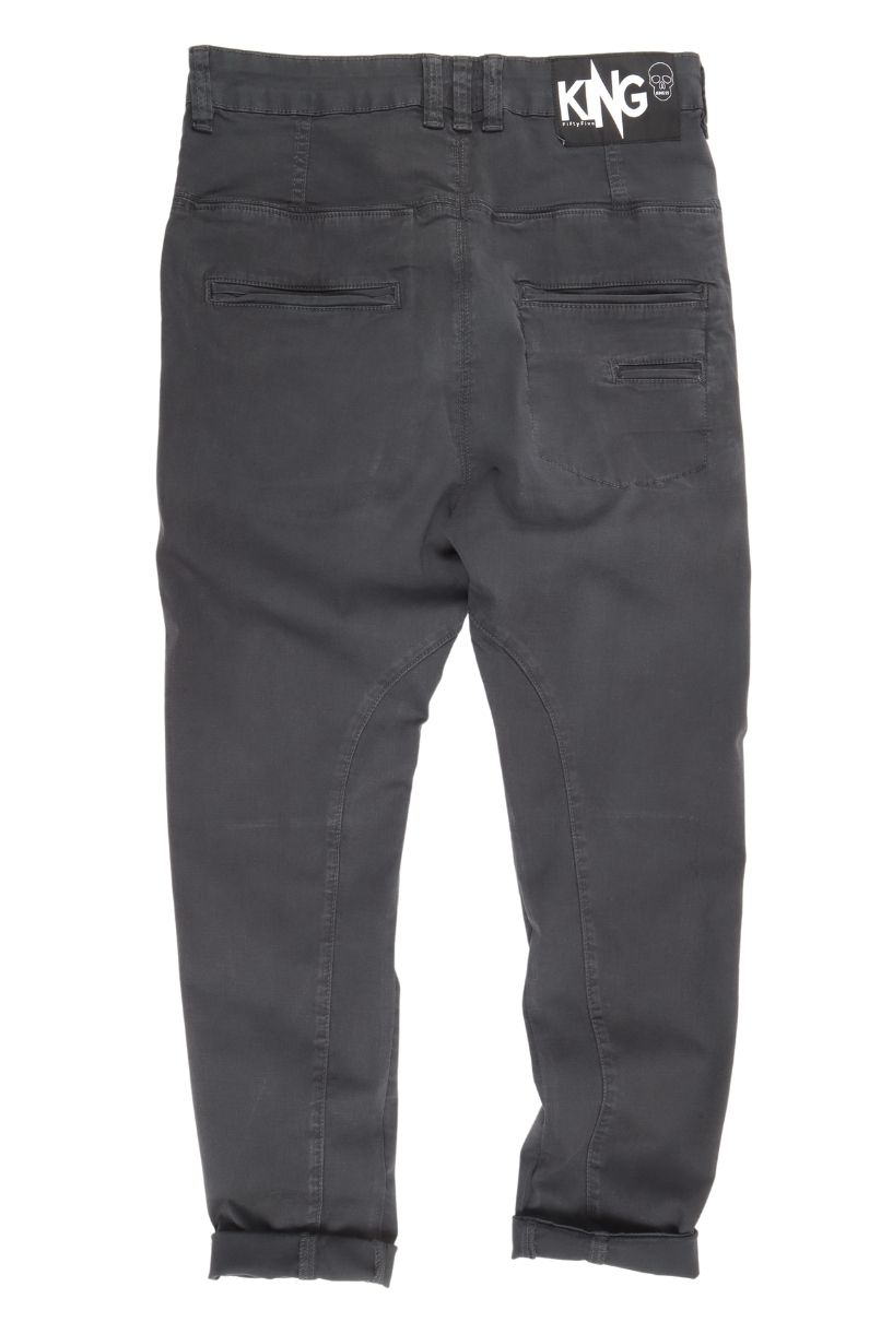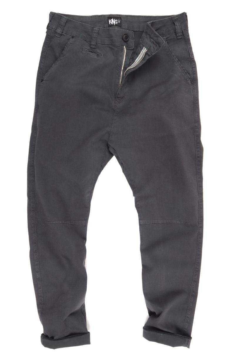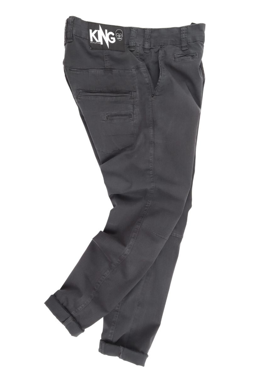Calça de sarja Verde Bandeira, Modelagem chino com bolsos faca, gancho longo e pernas ajustadas.