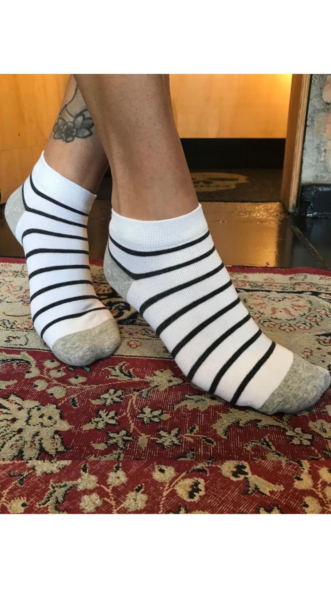Meia Soquete Cinza, listrada, confortável em algodão com elastano, ideal para o dia a dia e pratica de esportes.