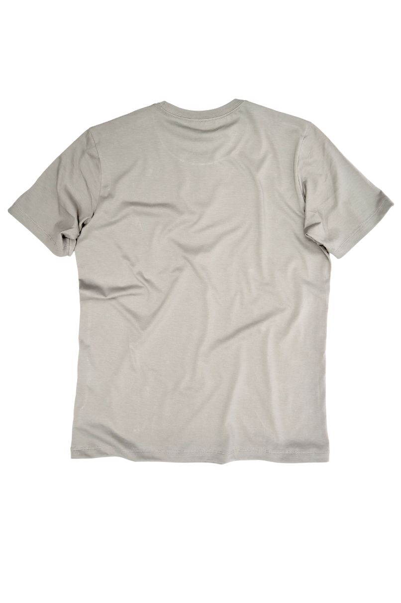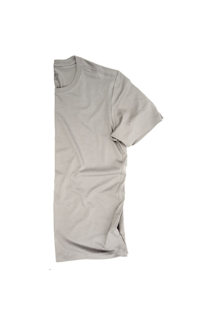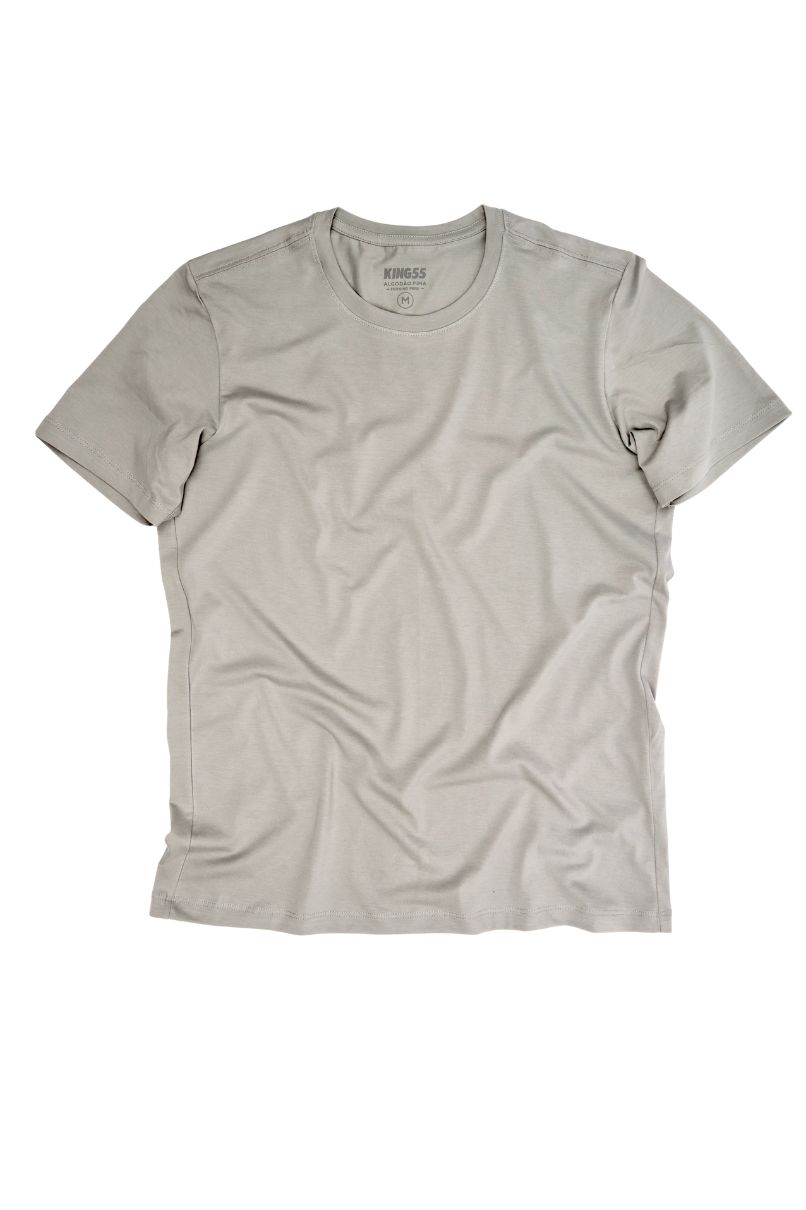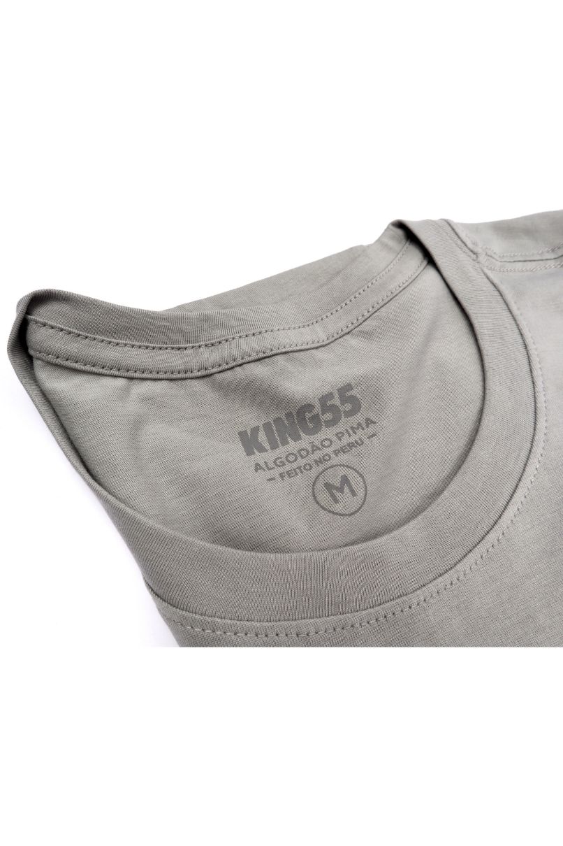 Camiseta Cinza Lisa, Vegana desenhada no Brasil, confeccionada no Peru, modelagem slim, gola careca.