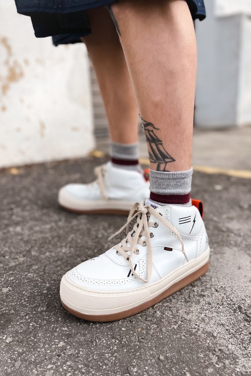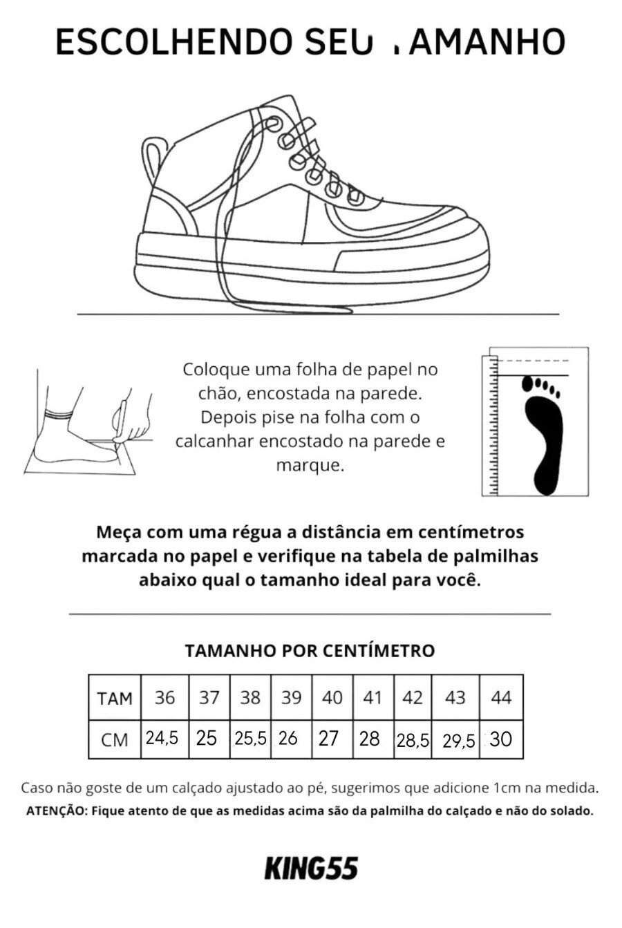 Tênis branco Harajuku HighPossui cabedal sintético de microfibra, material interno têxtil Poliéster e respirável, fechamento em cordão de algodão para melhor ajuste dos pés e o solado personalizado de borracha natural. O Design deste tênis100% Vegano e Unissex é prático e exclusivo, do tipo que combina com qualquer roupa, seja casacos, calças curtas, pantalonas, skinnys, meias coloridas, saias, shorts, etc...
