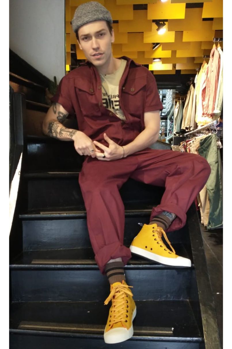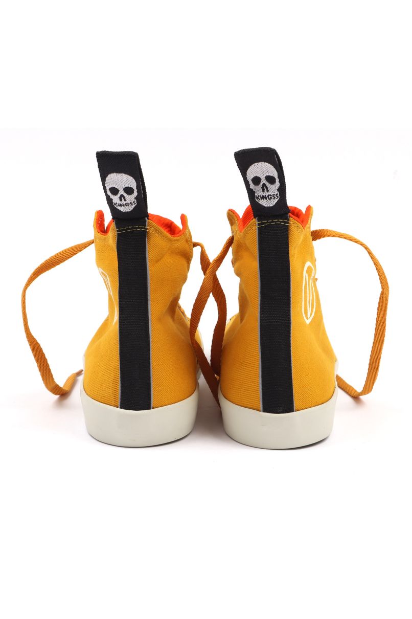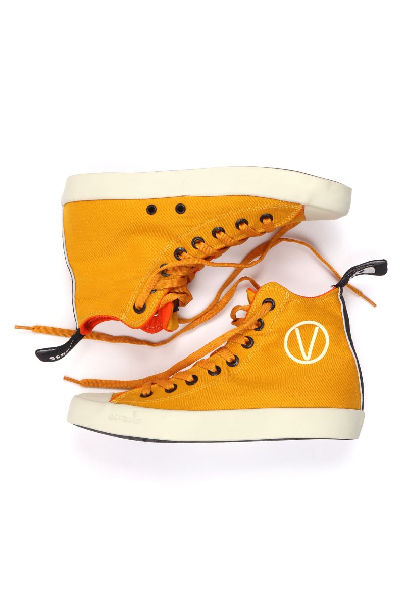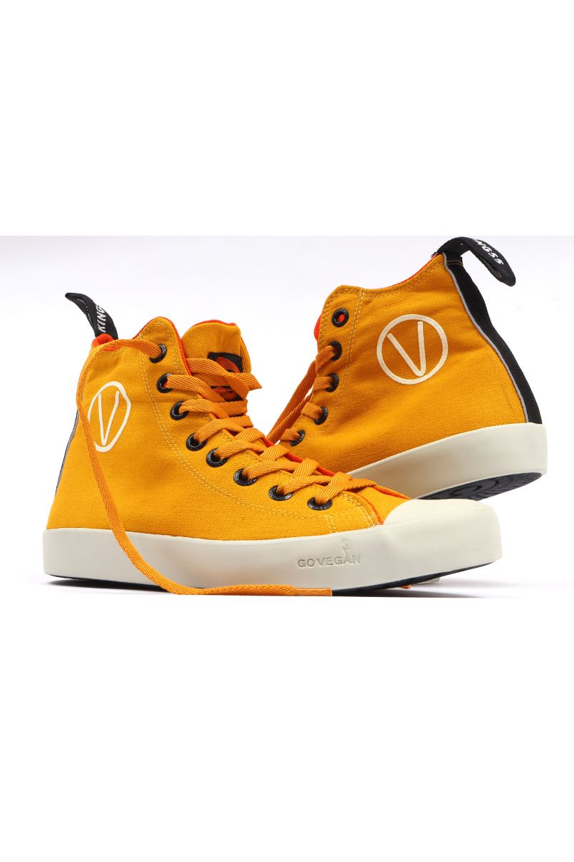 Tênis Vegano Mostarda, cano alto, Confeccionado em tecido de algodão - 100% livre de Crueldade Animal. Esse Tênis tem um super diferencial que é uma fita refletiva na parte de trás, proporcionando mais segurança para quem anda de Bike, Skate, etc...tambem possui elastico na parte interna para segurar a lingua do tênis, dando mais conforto e estabilidade no cabedal.