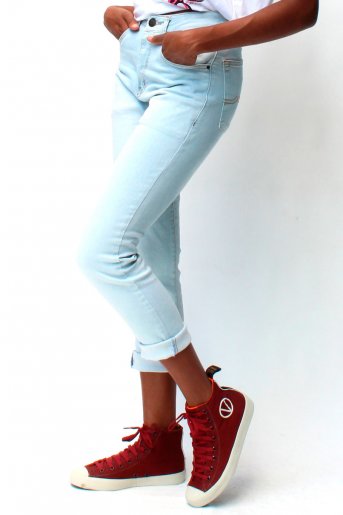 Calça Jeans New Berlin Confeccionada em tecido plano Jeans, cintura alta, possui bolsos frontais e traseiro fechamento em zíper.