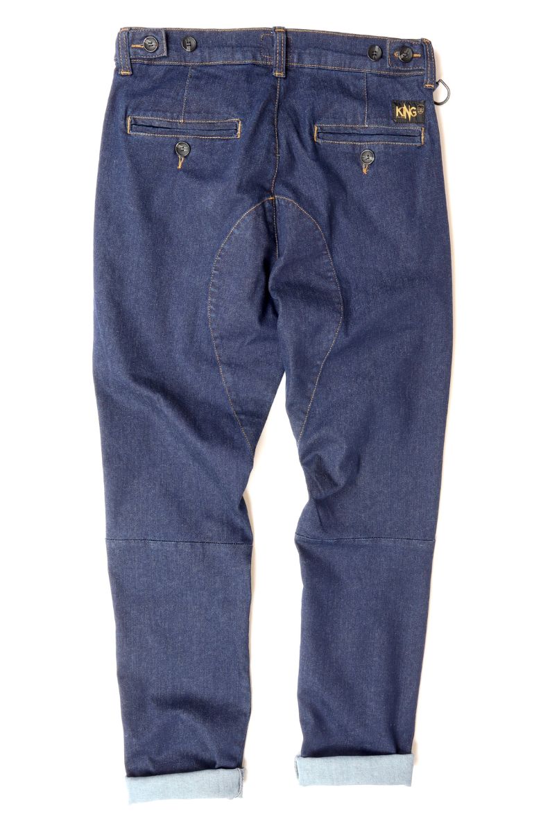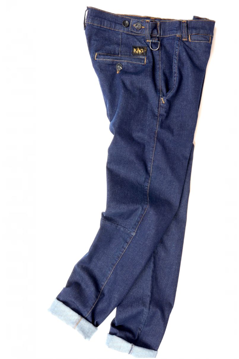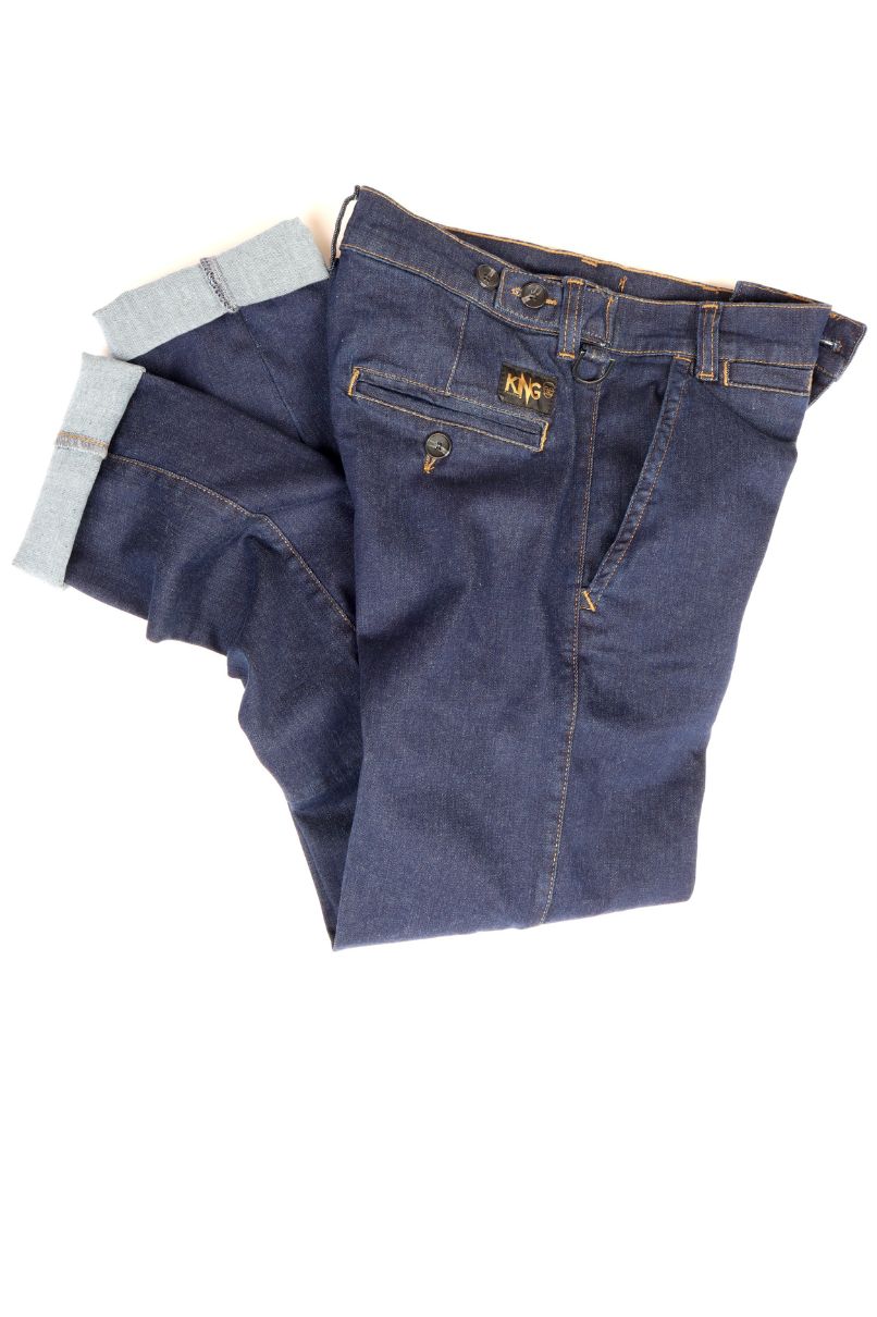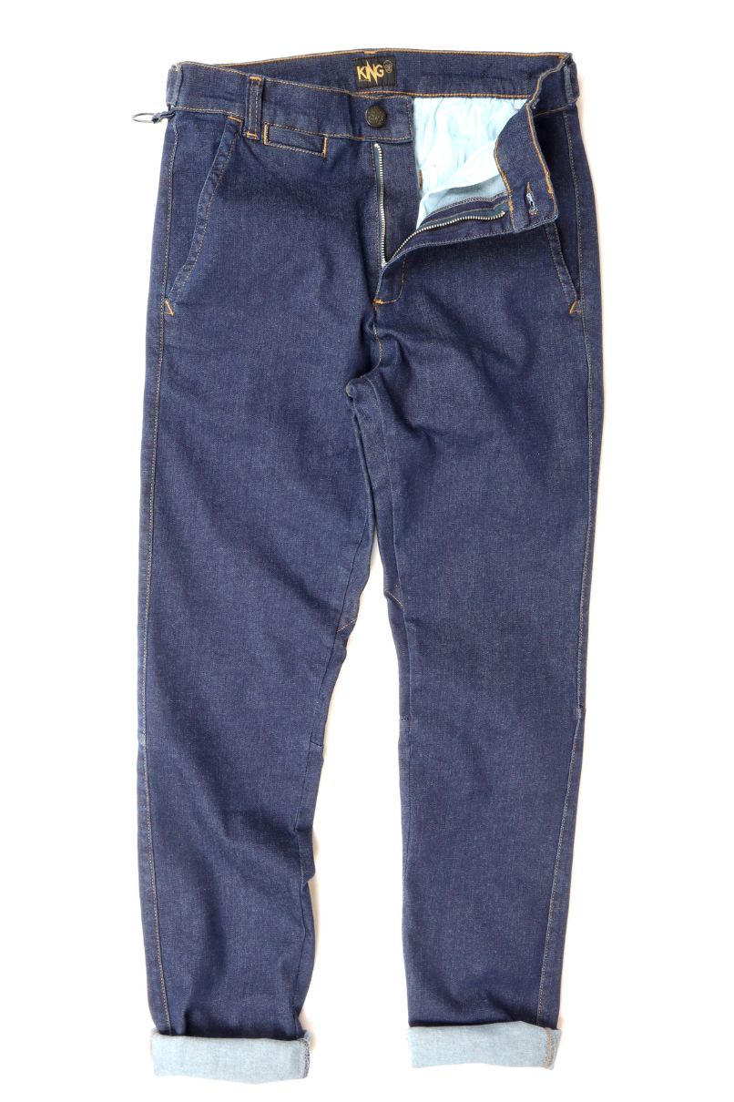 Calça Jeans modelagem semi-skinny, cintura intermediária, duplo reforço no gancho traseiro com tecido duplo evitando maior desgaste entre as pernas conforme o uso, recorte na parte de trás do joelho dando mais anatomia a perna, bolso faca e traseiro embutido. Seu fechamento em zíper e botão. Possui também bolso relógio, fivela para chaveiro e ajustes no cós, o que dá melhor caimento.