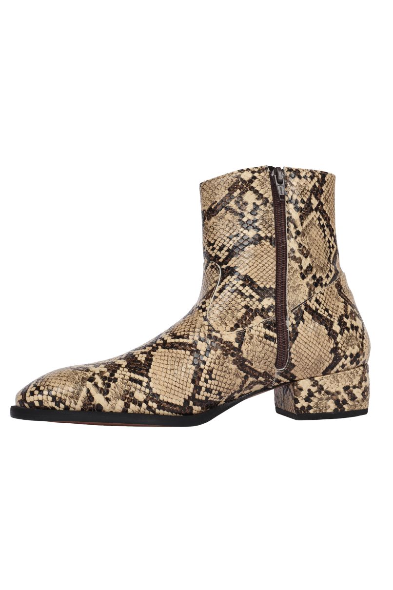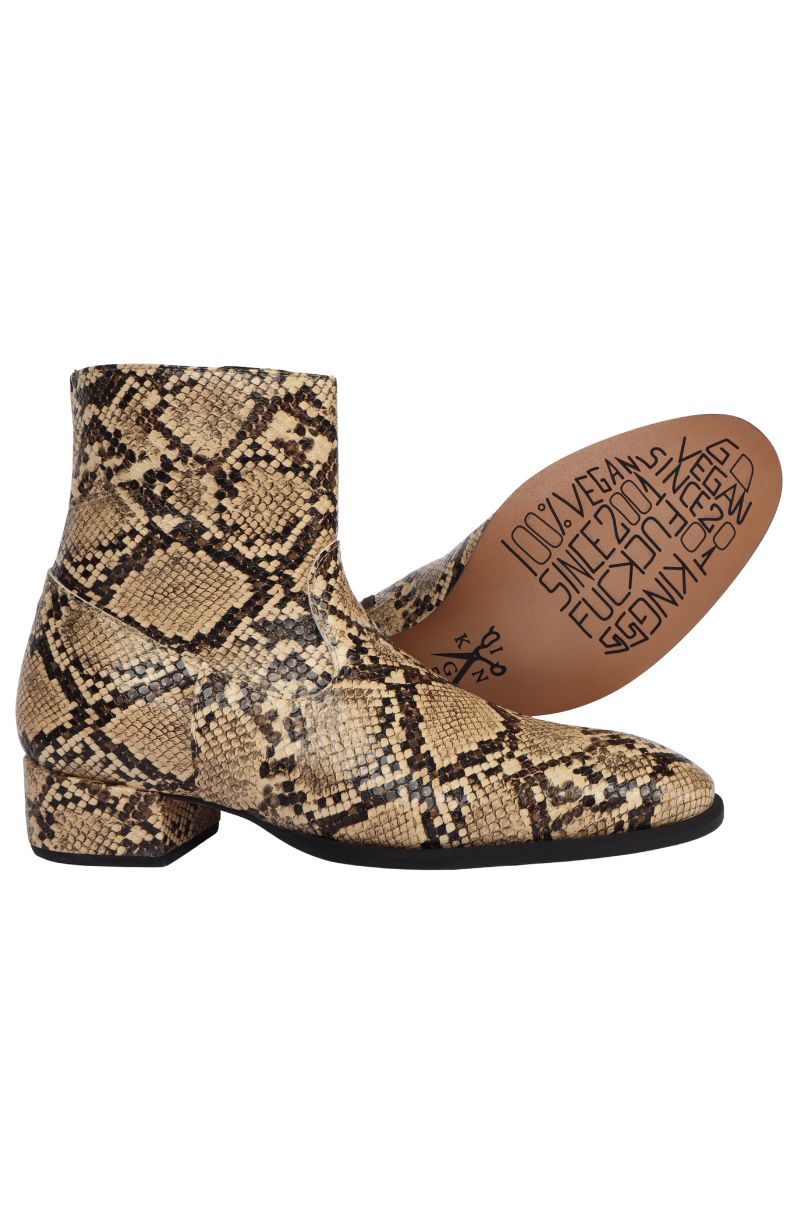 Bota vegana Unissex Beige Com Textura de Cobra, tem solado Personalizado King55. Confeccionado de Material Sintético (por dentro e por fora) 100% livre de crueldade animal.