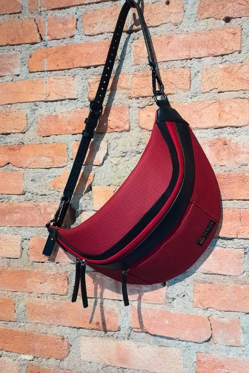 Pochete Vegana, na cor Vermelho com Preto, produzida em Material sintético 100% Cruelty free, com o corpo e alças confeccionada em fake leather, contendo regulagem em toda a extensão da alça permitindo que você utilize com maior mobilidade no corpo.