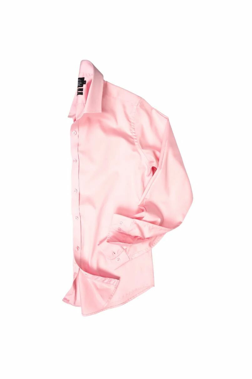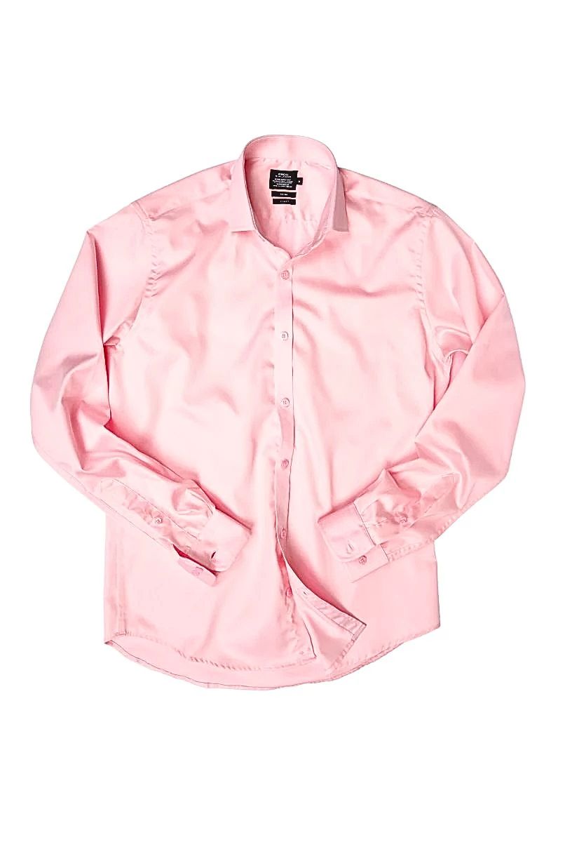 Camisa Social Rosa Manga Longa, tecido importado Fio 100, modelagem Slim Fit, colarinho italiano, punho chanfrado com abotoamento regulável.