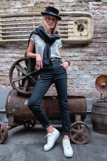 Calça Preta Tokyo King55 traz a vibe Baggy com um toque contemporâneo: cintura alta, corte oversized e um fechamento em zíper + botão personalizado, garantindo um visual de personalidade.