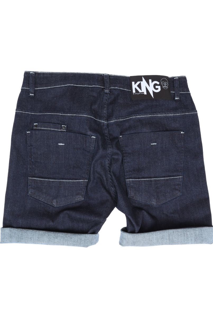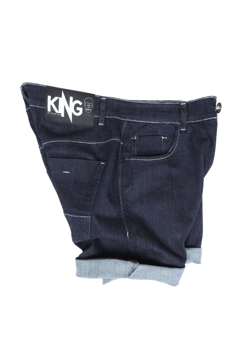 Bermuda com costura em tom mais claro, fechamento da braguilha em botão e zíper, corte tradicional five pockets, mas conta com bolso moedeiro adicional atrás também, sendo 3 bolsos frontais e três bolsos traseiros.