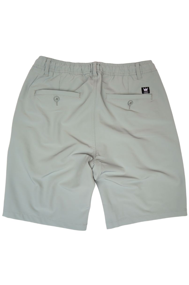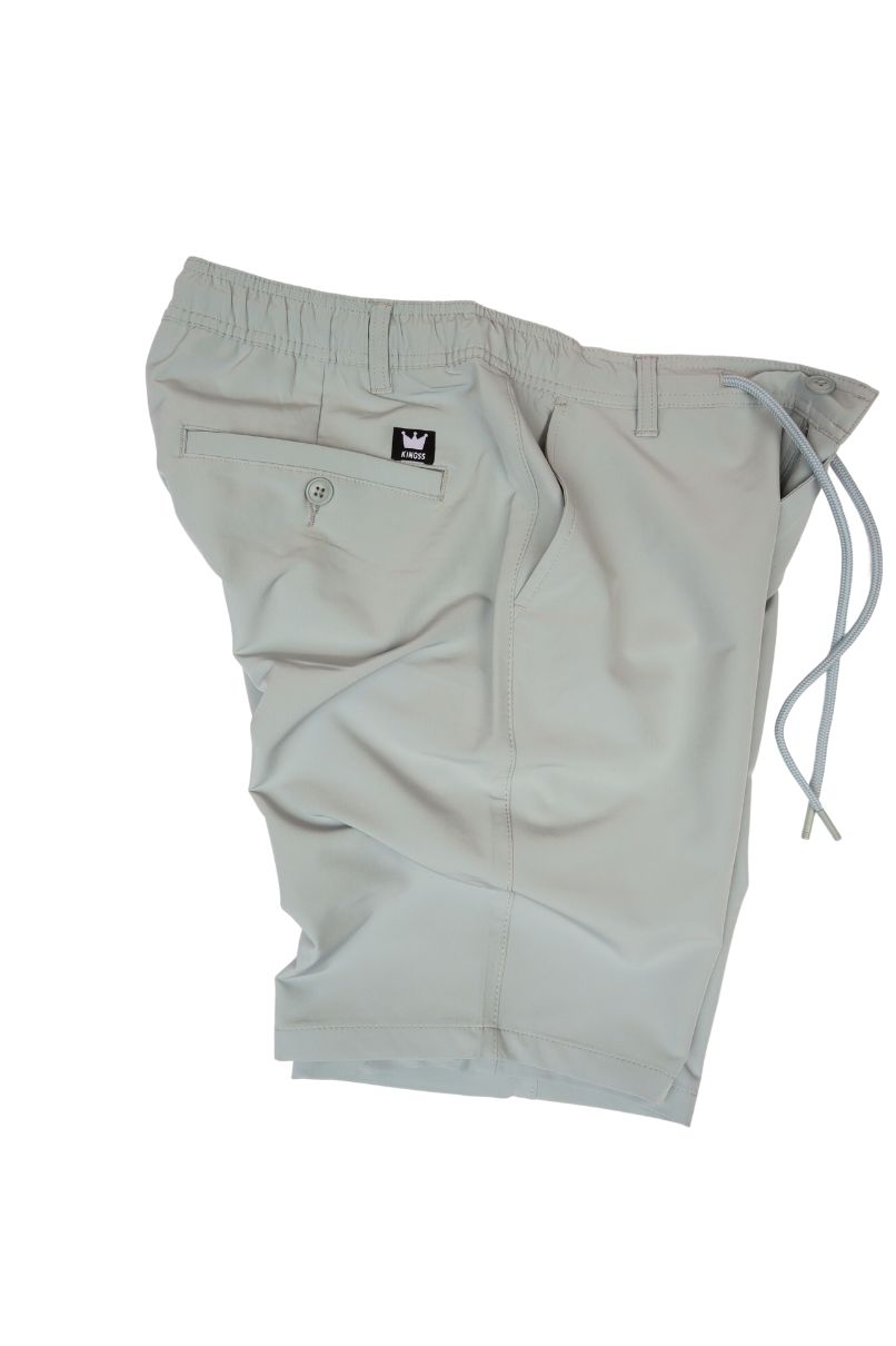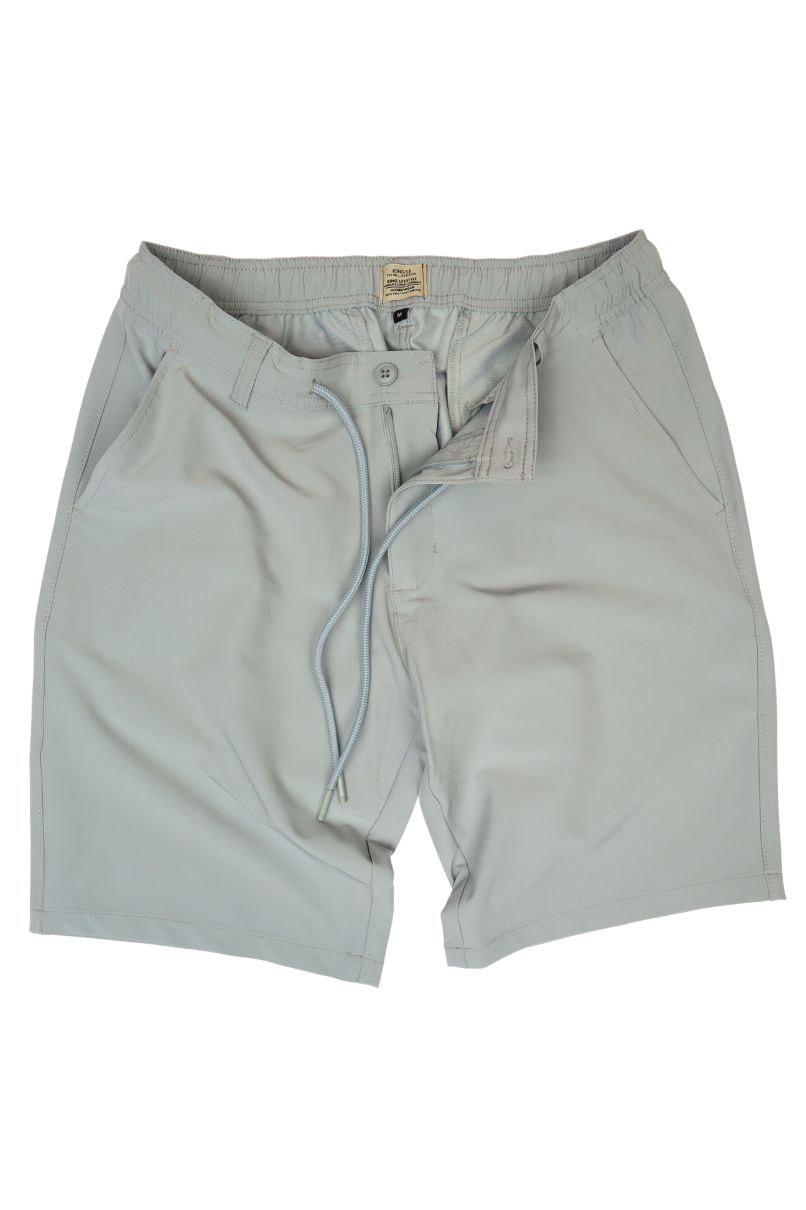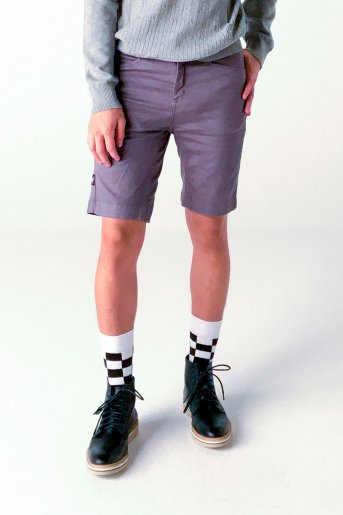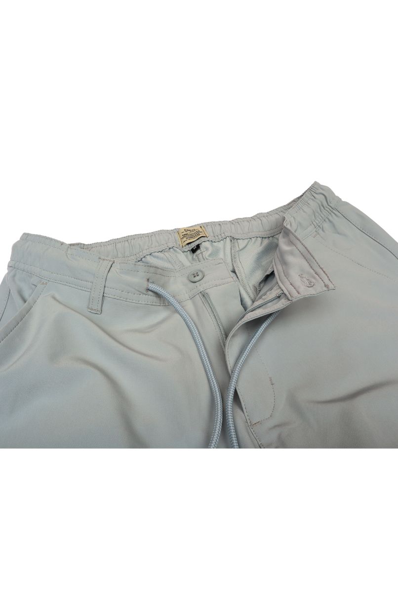 Bermuda Lisa de Microfibra Cinza, modelagem Jogger que dispõe de cós com elástico e ajuste em cadarço, fechamento em braguilha com zíper e botão de massa. Bolsos frontais faca e 2 bolsos traseiros embutidos com fechamento em botão de massa.