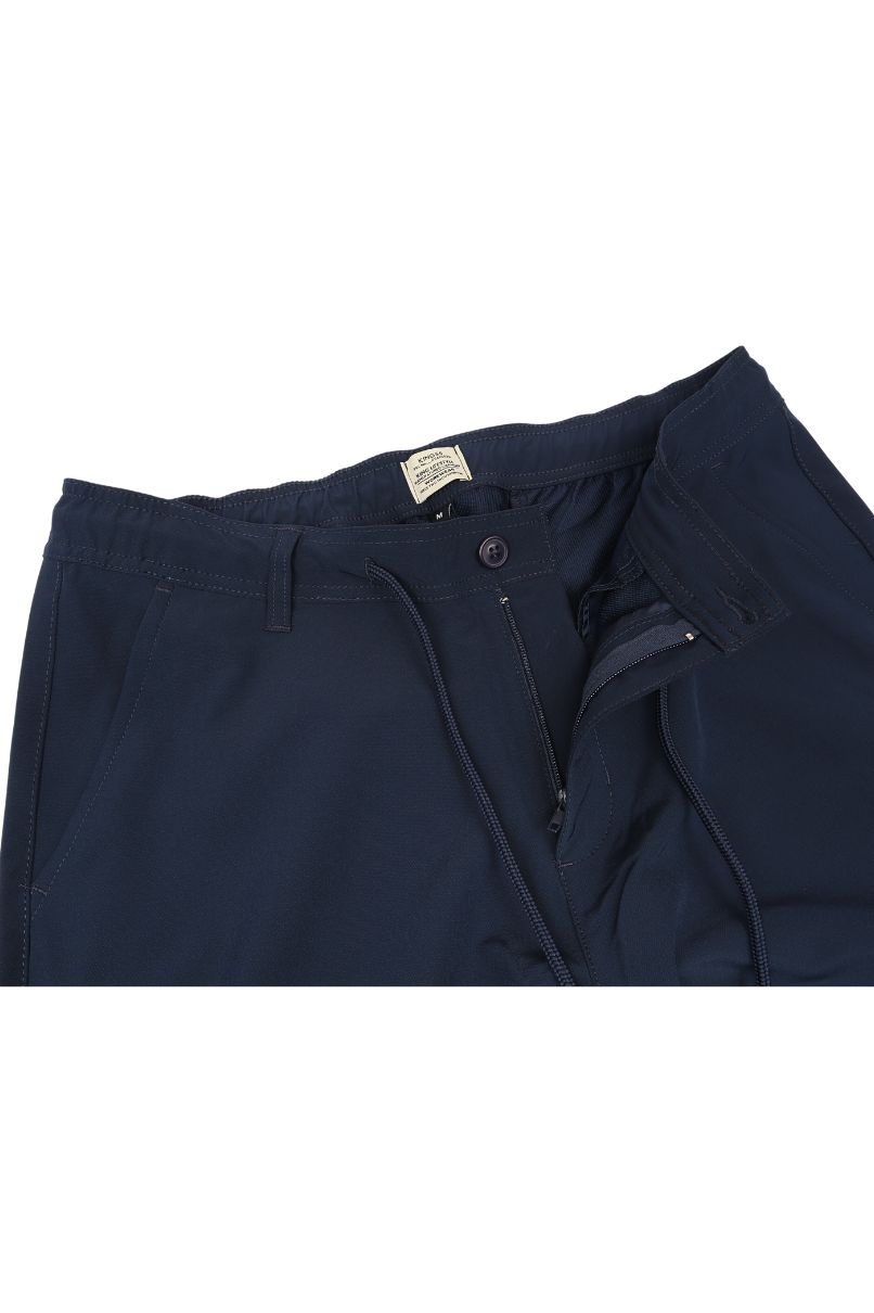 Bermuda Lisa de Microfibra Azul Marinho, modelagem Jogger que dispõe de cós com elástico e ajuste em cadarço, fechamento em braguilha com zíper e botão de massa. Bolsos frontais faca e 2 bolsos traseiros embutidos com fechamento em botão de massa.