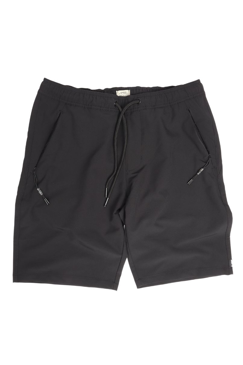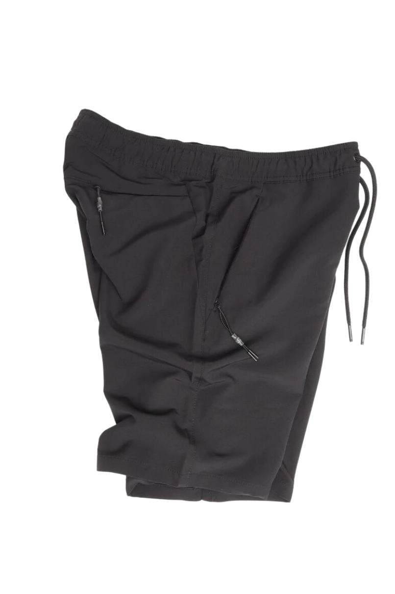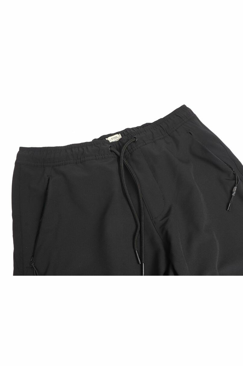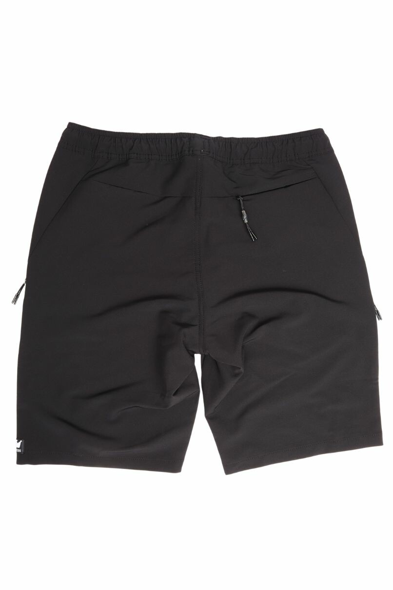 Bermuda Jogger de Microfibra Preto, dispõe de cós com elástico e ajuste em cadarço. Bolsos frontais faca e 1 bolso embutido traseiro todos com fechamento em ziper.