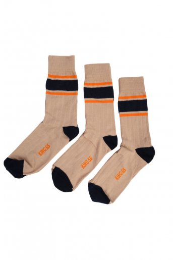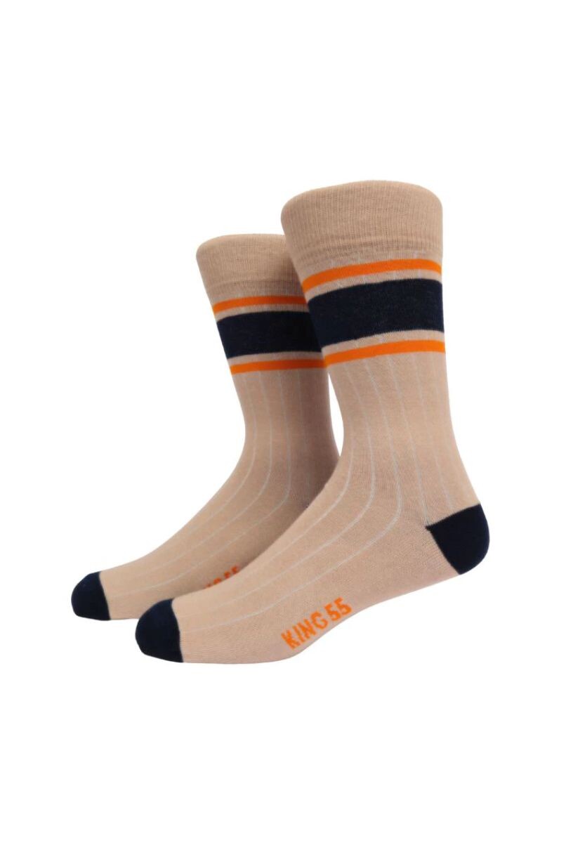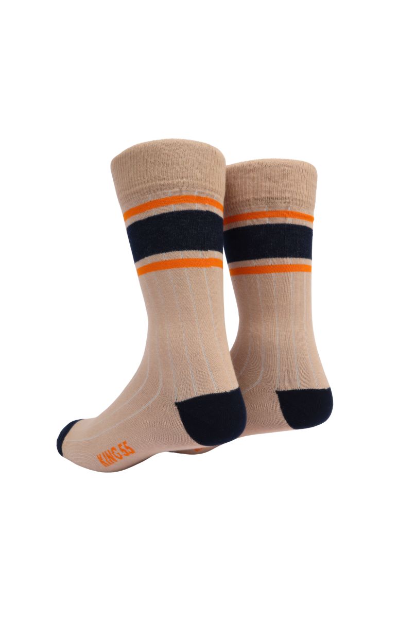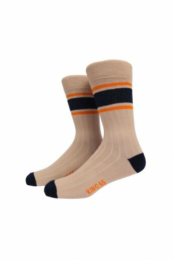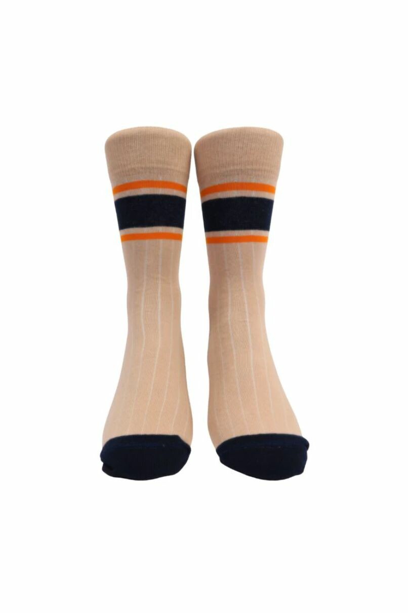 Meia com listras na cor Kaki, confortável em algodão com elastano, ideal para o dia a dia, ótima para refinar o visual com sapatos e tênis.
