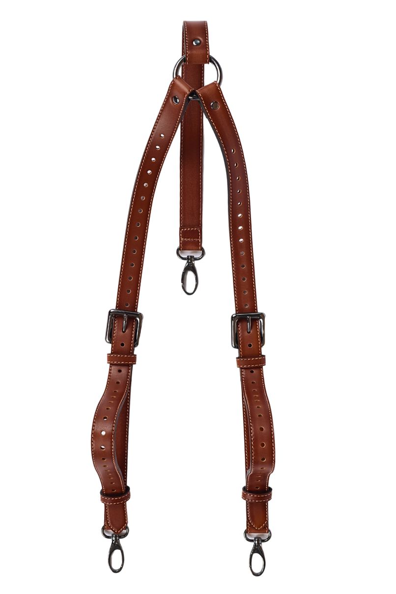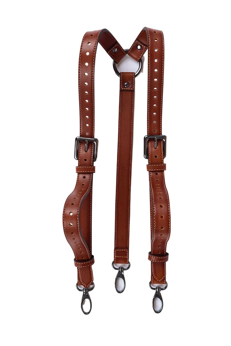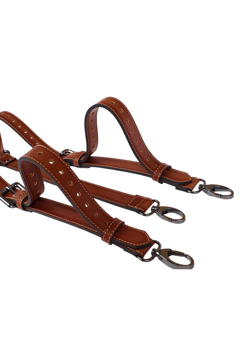 Suspensório Fake Leather Castor, 100% sintético, livre de Crueldade Animal com alta resistência e conforto.