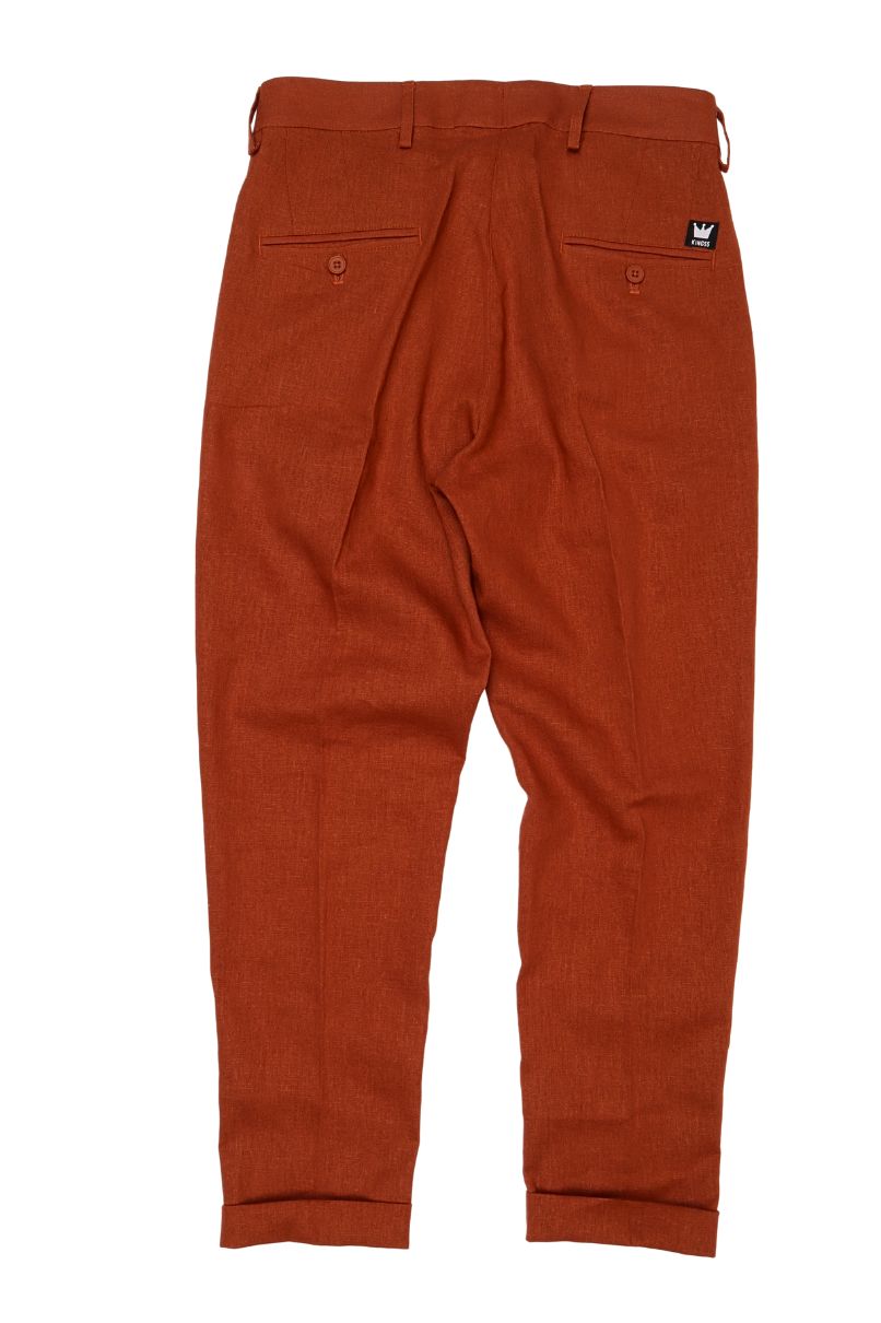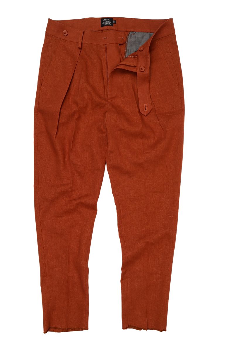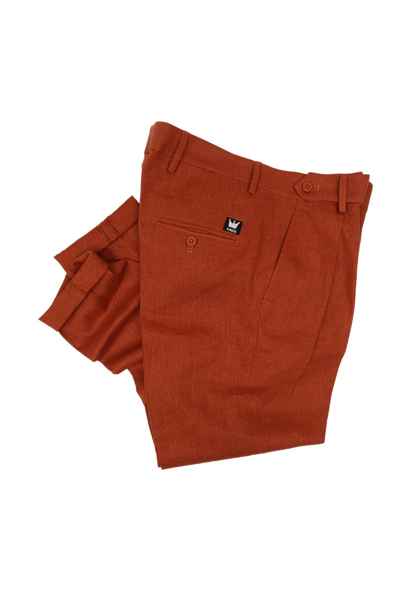 Calça Marrom Casca Linho Prega, dispõe de cós transpassado, abotoamento duplo e braguilha com zíper, conta com passadores possibilitando o uso de cinto. Bolsos frontais faca e bolsos traseiros embutidos com fechamento em botão.