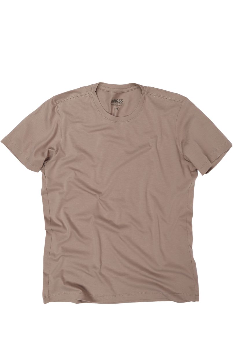 Camiseta Nude Lisa, Vegana desenhada no Brasil, confeccionada no Peru, modelagem slim, gola careca.