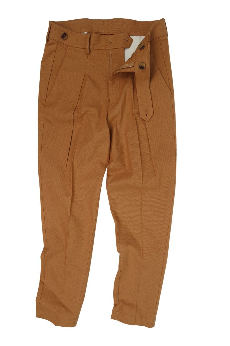 CALÇA MOSTARDA LINHO PREGA