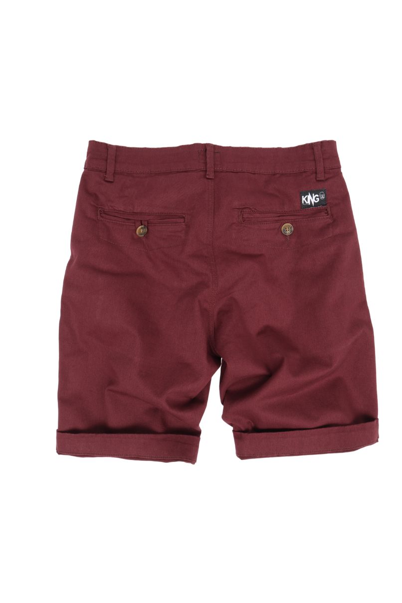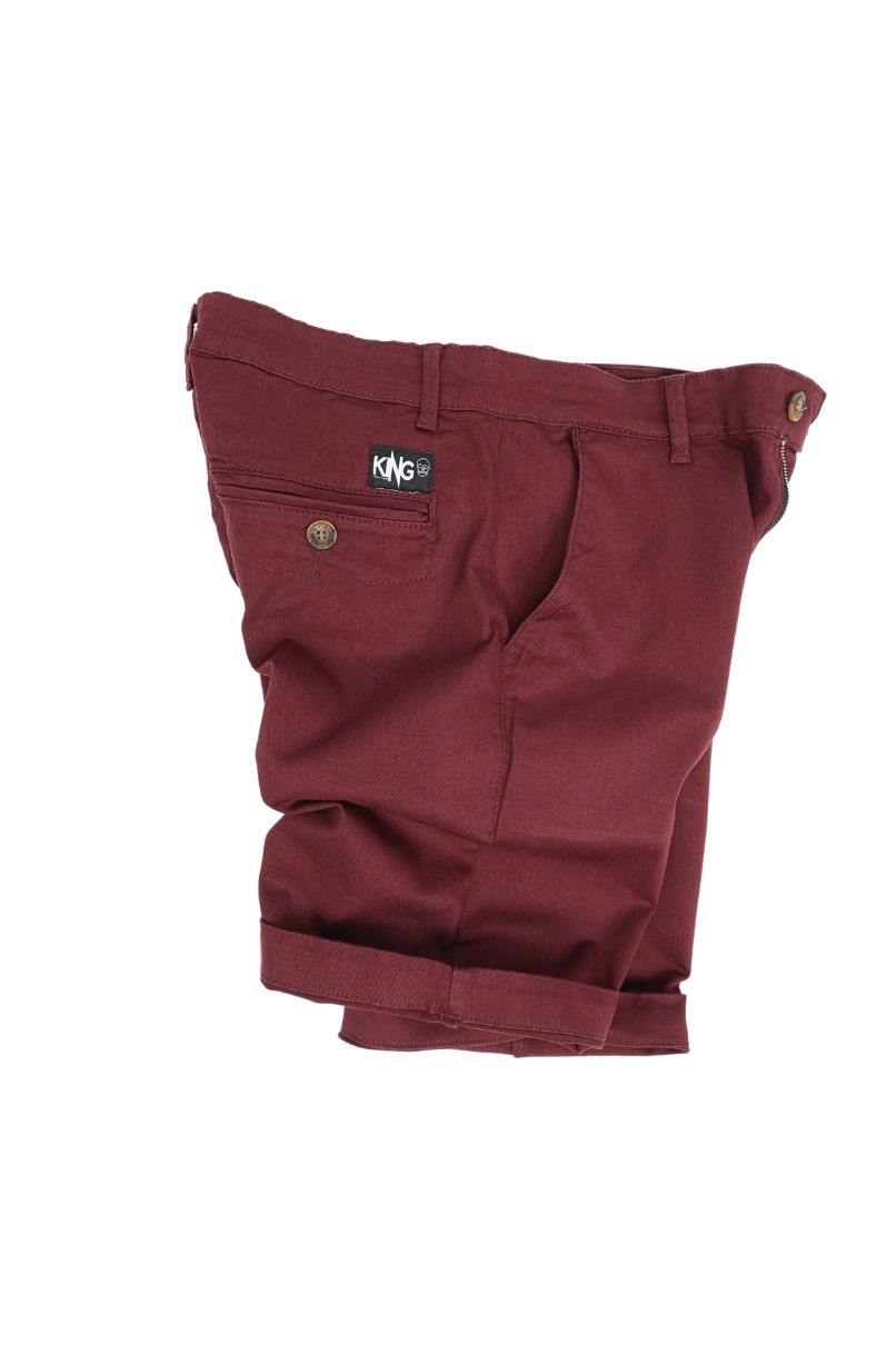 Bermuda de sarja Bordo, cintura intermediária, bolsos faca, bolsos traseiros embutido com fechamento em botão. Fechamento em zíper.
