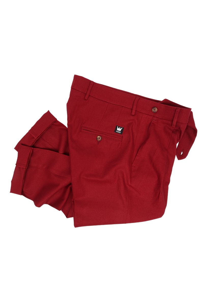 Calça Vinho Linho Prega, dispõe de cós transpassado, abotoamento duplo e braguilha com zíper, conta com passantes possibilitando o uso de cinto. Bolsos frontais faca e bolsos traseiros embutidos com fechamento em botão.