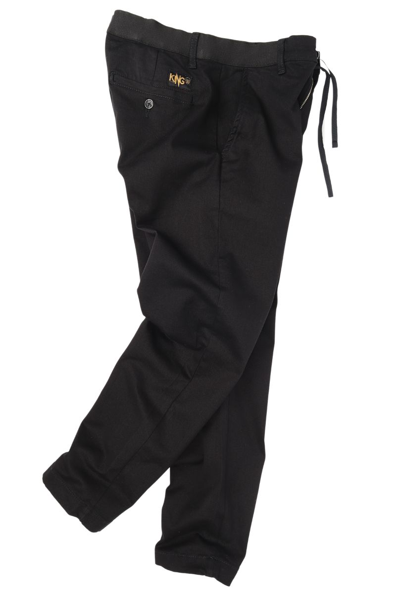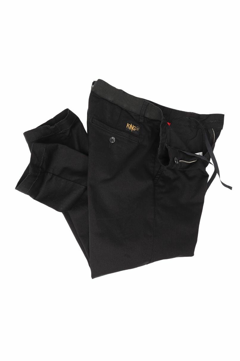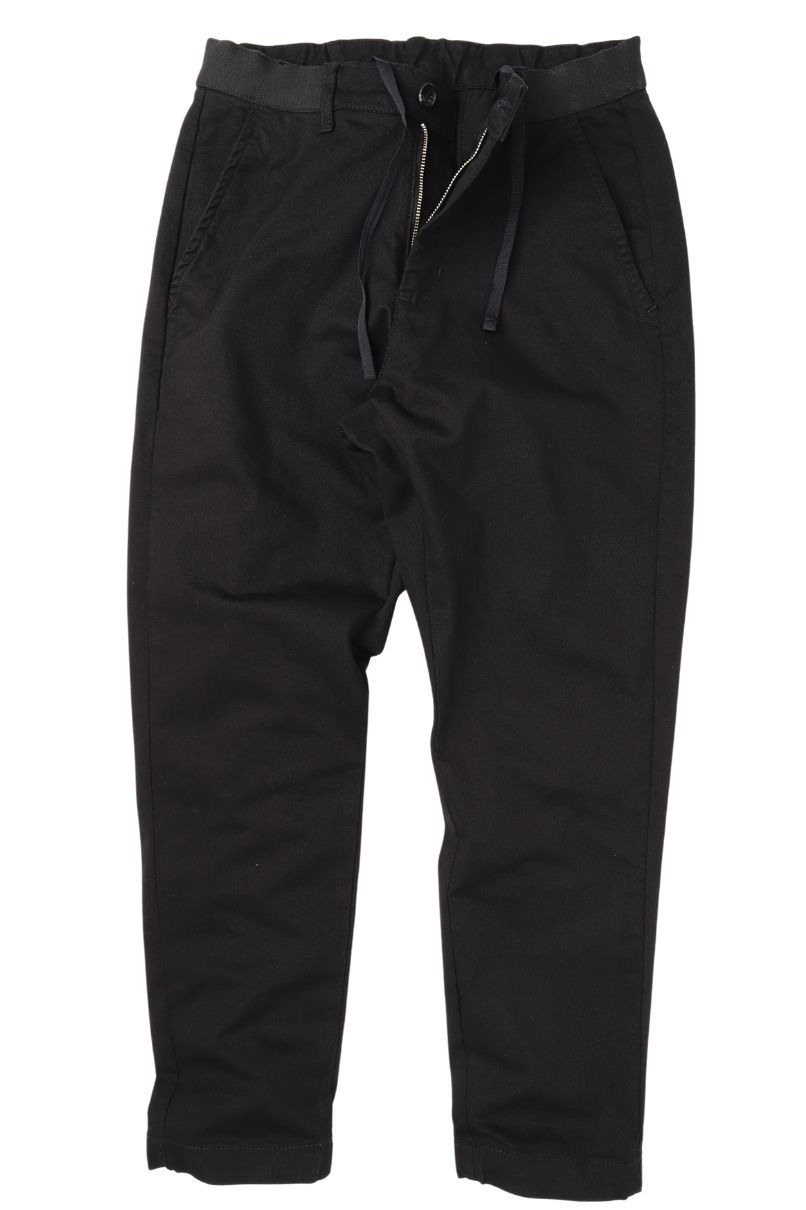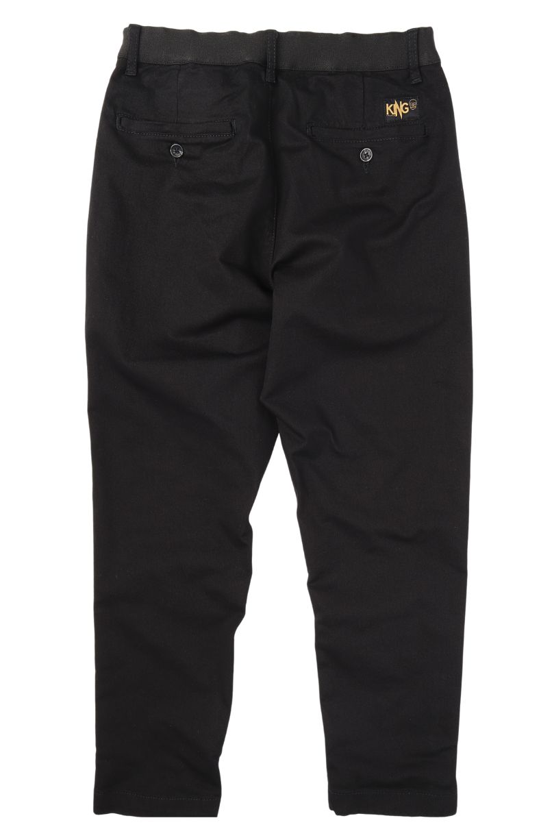 Calça New Spot, cós elástico ajustável por cadarço e fechamento em botão e zíper, com passadores permitindo o uso de cinto, gancho baixo, bolso faca, bolso traseiro embutido com fechamento em botão.