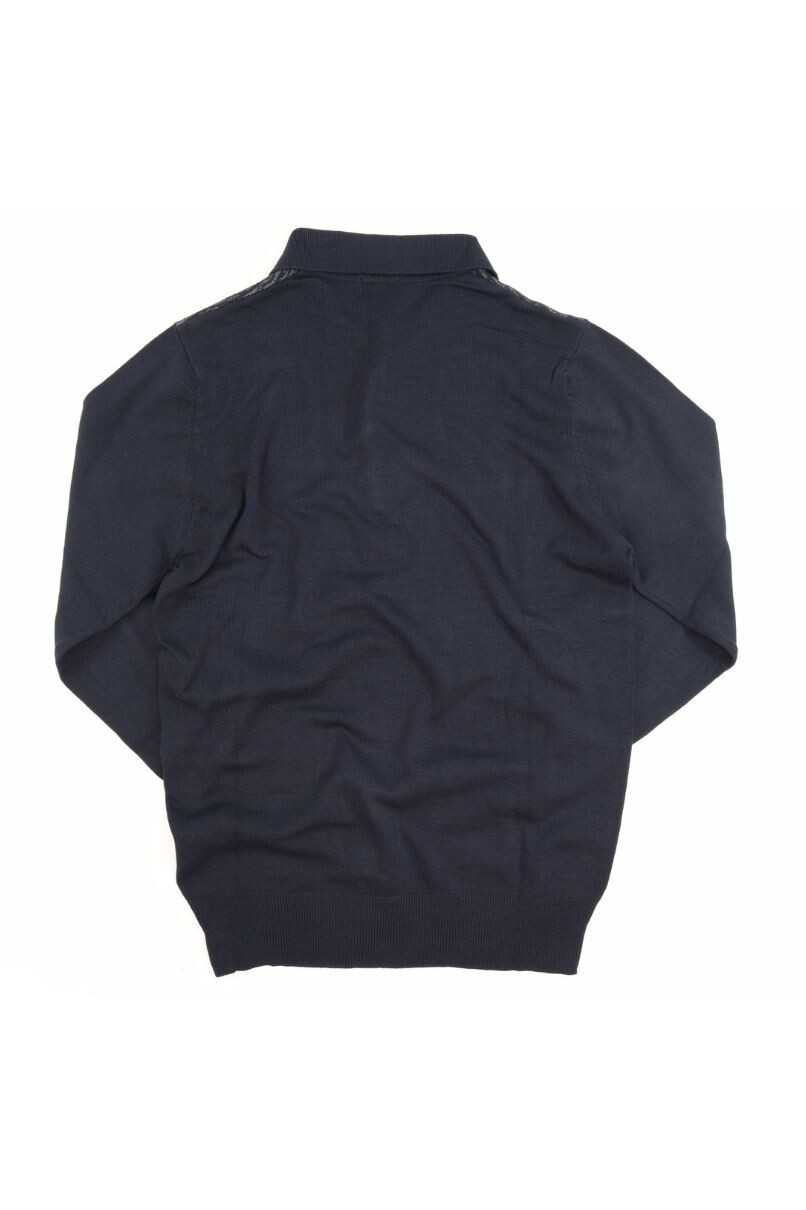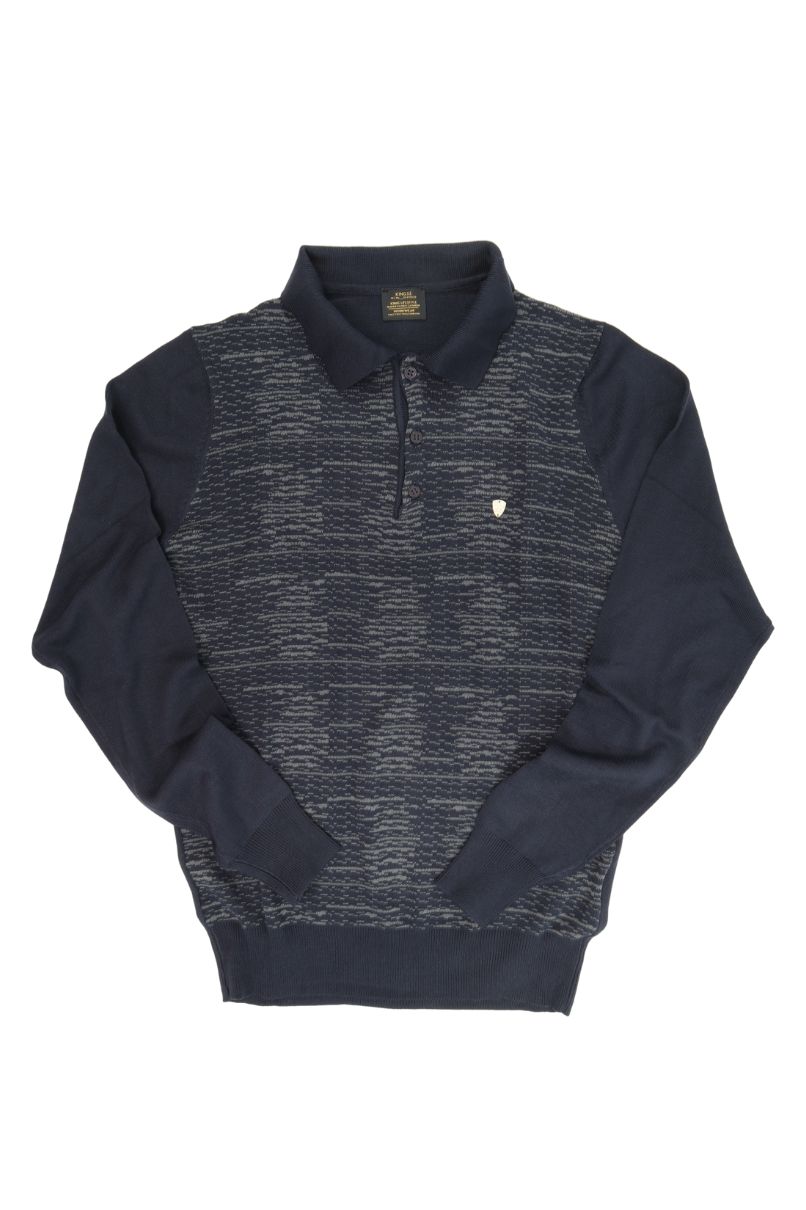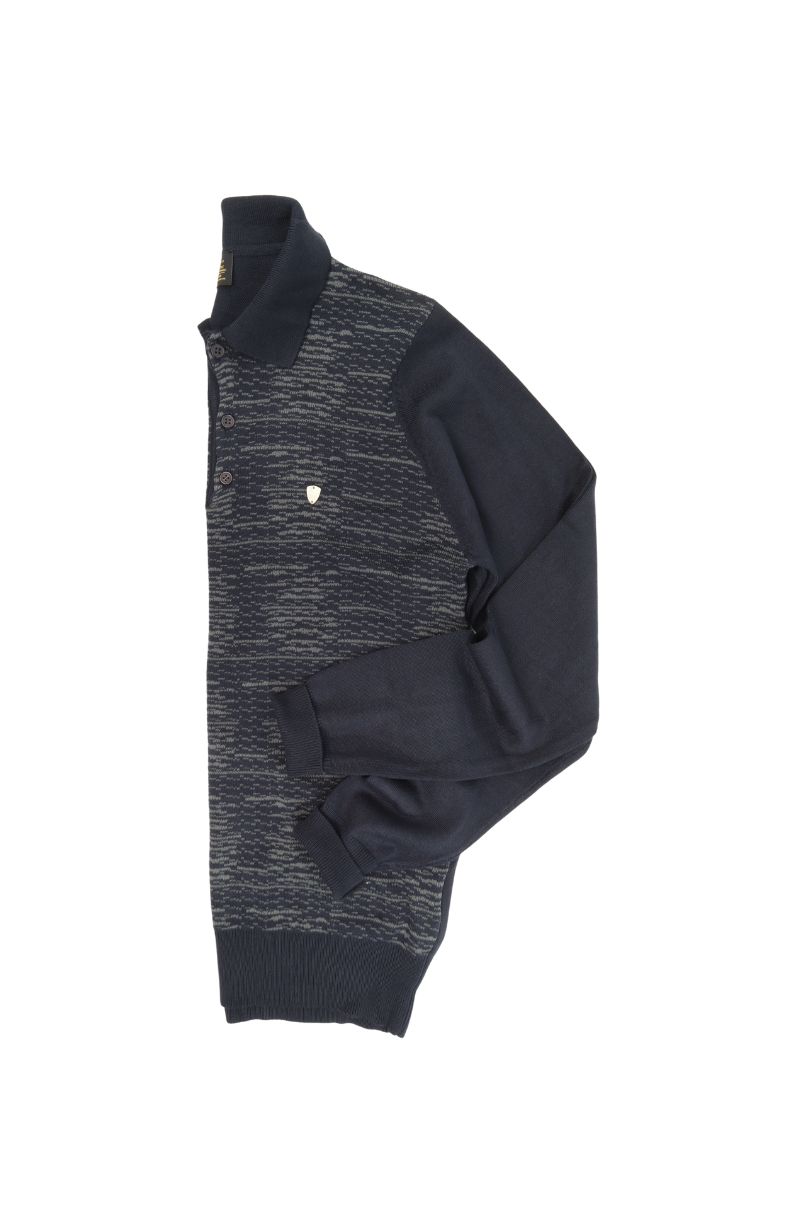 Sueter Polo Tricot Marinho, manga longa. Estrutura em tricô. Parte frontal mesclada com Cinza, dispoe de 3 botões e pingente Exclusivo King55. Apresenta modelagem reta oferecendo conforto ao visual, perfeito para dias mais frescos.