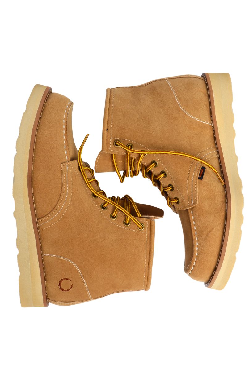 Bota Moc Toe Worker Suede Bege, Confeccionada em Material Sintético 100% livre de Crueldade Animal.
