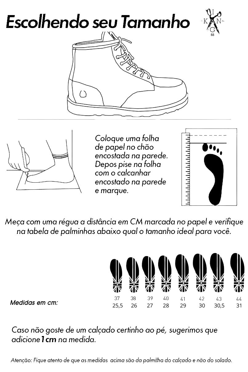 Palmilha em PU de alta densidade. Seu cabedal é construído à partir de Material Sintético de PU imitando a Camurça.