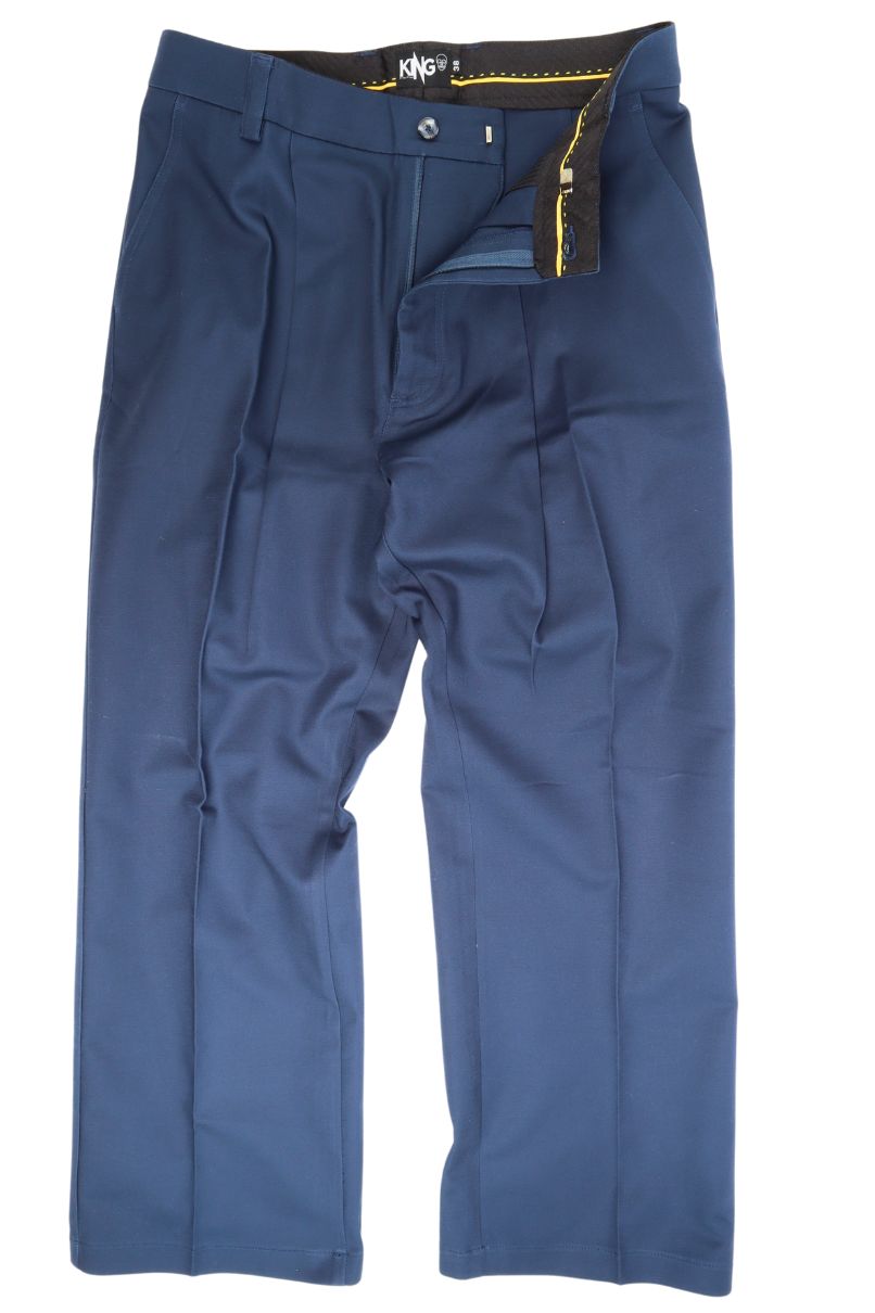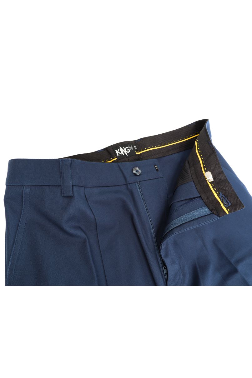 Calça de Sarja Reta, confeccionada com Tecido Premuim, modelagem ampla, com pregas e bolsos frontais faca dando um caimento e acabamento de alfaiatairia. Bolsos traseiros quadrados.